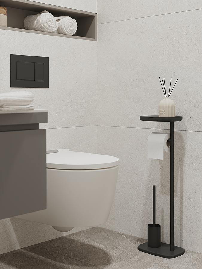 Аксессуар Bergenson Bjorn Держатель для туалетной бумаги с полочкой и ершиком slim, черный арт. BB0000945