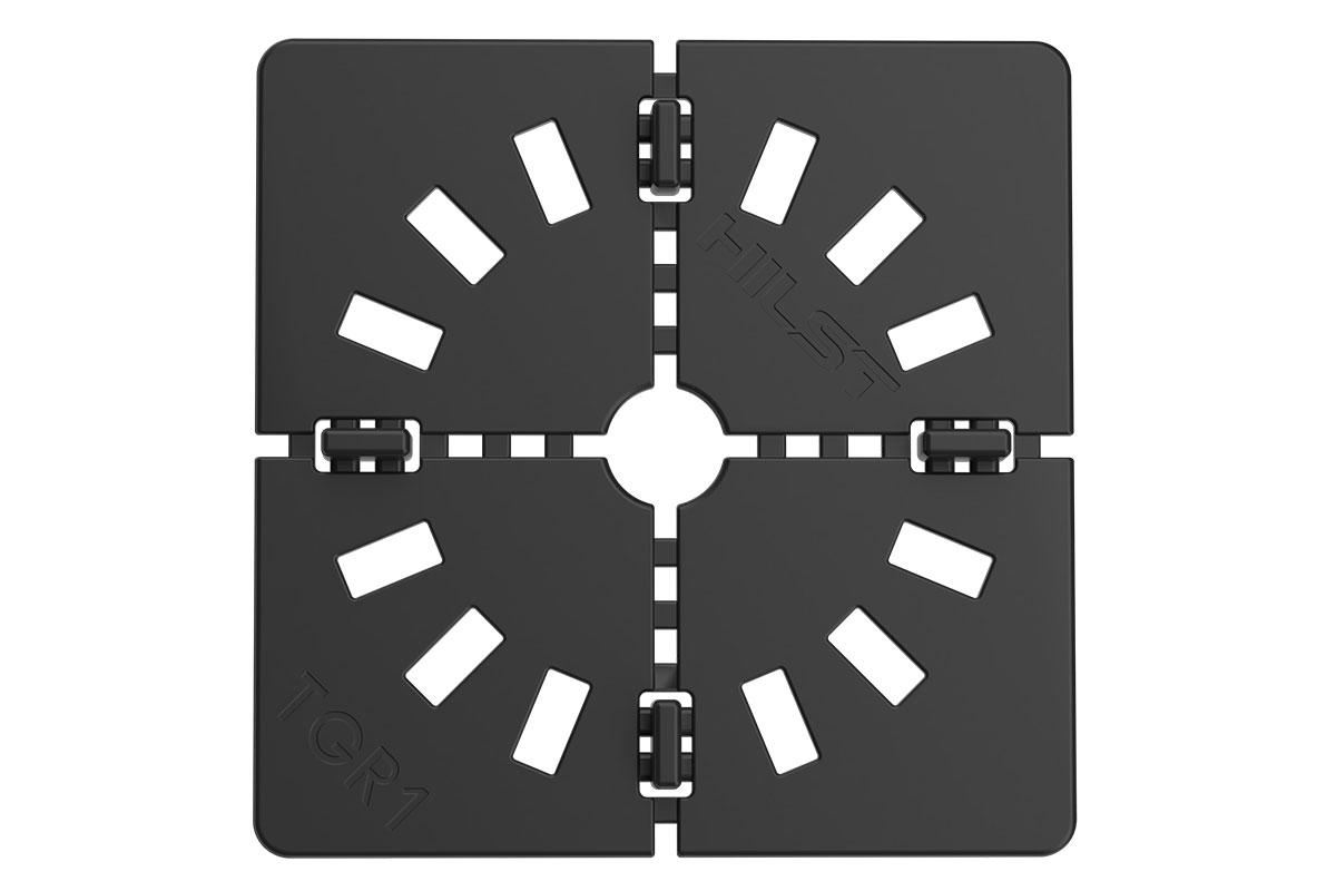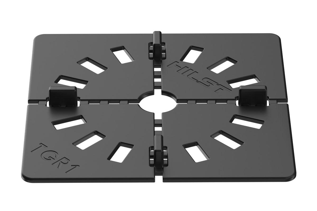 Подложка с регуляторами зазора для плитки ТGR1 выполнена из полипропилена с добавлением резины (для снижения вибрационных нагрузок). Специальные элементы (табуляторы) в процессе монтажа обеспечивают межплиточный шов шириной 4 мм.