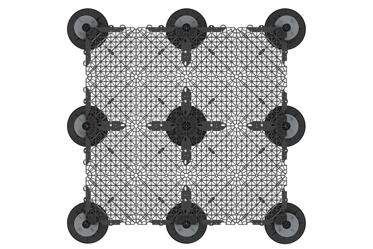 Система настила HILST G'RID является надежным и эффективным решением для установки фальшпола под керамогранит. Система гарантировано обеспечит ровную поверхность под финишное покрытие, что делает её превосходным выбором для различных применений: от обустройства пешеходных дорожек до создания многофункциональных зон отдыха.