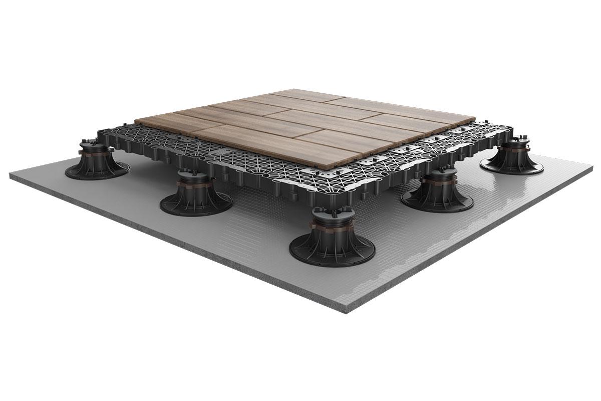 Система настила HILST G'RID позволяет применять керамическую плитку разных форматов с различными узорами, а также комбинировать искусственную траву с керамогранитом, создавая функциональные и эстетичные «зеленые крыши» на зданиях. В качестве финишного покрытия возможна укладка влагостойких паркетных досок.