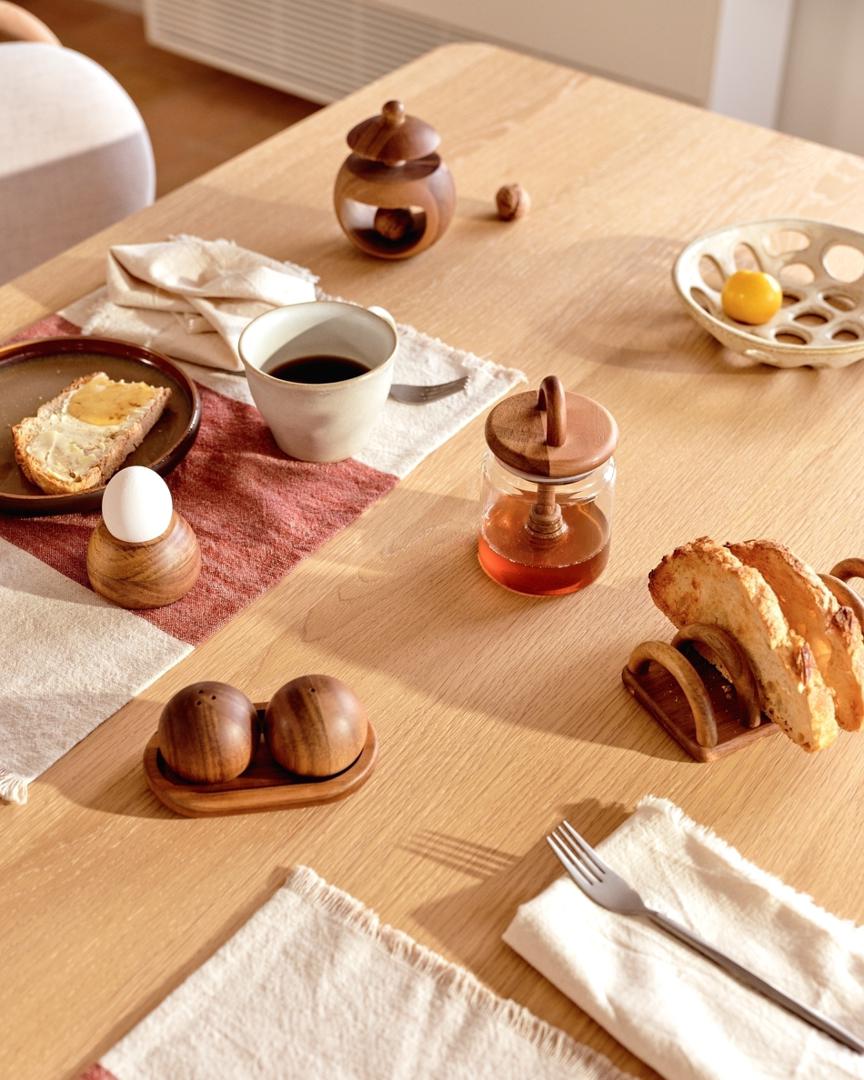Коллекция Nukha acacia wood разработана с округлыми формами, которые сочетают функциональность и элегантность. Каждый предмет подчеркивает естественную красоту дерева, с гладкой, прочной отделкой, которая приносит тепло и органический стиль на вашу кухню.