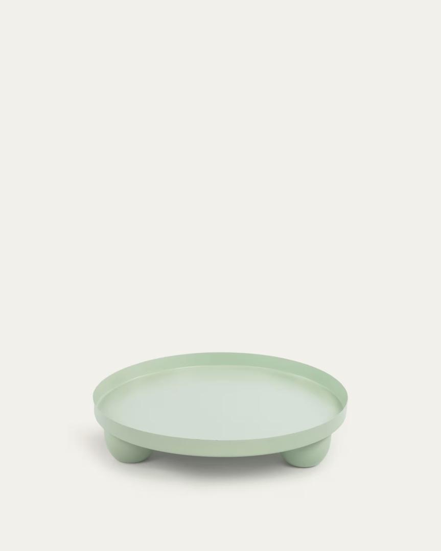 Поднос Charisse от фабрики La Forma (ex Julia Grup) – для необычной подачи ваших кулинарных шедевров. Поднос Charisse специально разработан, чтобы добавить стиля вашей сервировке. Сделанный из металла и имеющий свежий мятный цвет, он будет ограничен с яркими фруктами, хлебом, сырной нарезкой. Каждое событие должно стать особенным, как, например, ваше застолье с подносом Charisse! Поднос круглый. Он полностью сделан из металла и окрашен в светло-зеленый матовый цвет по технологии порошкового нанесения, что делает поверхность идеальной. Также эмаль защищает металл от влаги, ультрафиолета, перепадов температуры. Поднос дополнен бортиками высотой 2 см, благодаря которым еда не упадет на пол. А для устойчивости на столе предусмотрены ножки. Изделие запрещено мыть в посудомоечной машине – только ручная деликатная чистка. Изделие предназначено только для домашнего использования. Размер: диаметр – 41 см, высота – 9 см Вес — 0,84 кг
