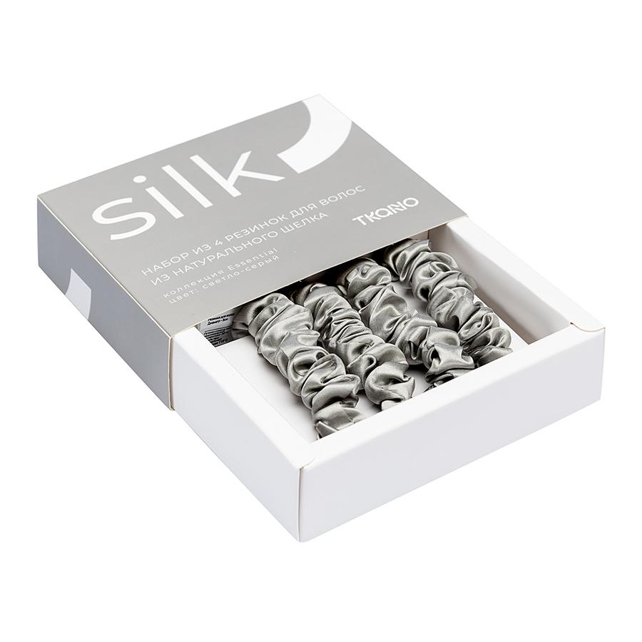 Аксессуар Tkano Набор из 4 шелковых резинок для волос светло-серого цвета из коллекции essential арт. TK24-HTS0003