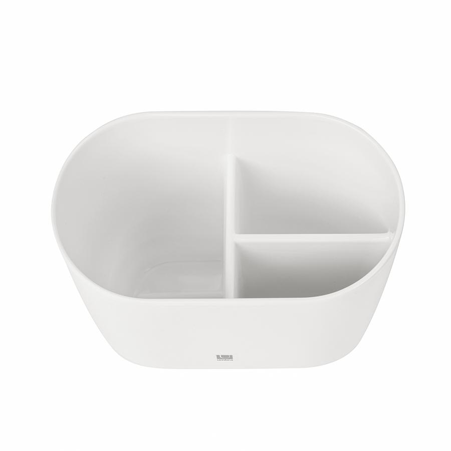 Стакан для зубных щеток Step отличает сдержанный, лаконичный стиль и продуманная функциональность. Его глянцевая поверхность сохранит безупречный вид даже при активном использовании. Благодаря компактным размерам аксессуар органично впишется в пространство любой ванной комнаты. Он будет хорошо смотреться в интерьере как соло, так и в комплекте с другими предметами из коллекции Step. Особенности и преимущества: - Изделие изготовлено из высокопрочного меламина с глянцевым покрытием, устойчиво к повреждениям и сочетает утонченный внешний вид с долговечностью. - Стакан разделен на три секции, что обеспечивают гигиеничное хранение зубных щеток, предотвращая их соприкосновение. - Специальная деталь приподнимает основную часть изделия над поверхностью, обеспечивая эффективную вентиляцию и защищая мебель от влаги. - Лаконичный дизайн и компактная форма делают Step универсальным выбором для любого интерьера. - Возможность комбинирования с другими аксессуарами коллекции позволяет создать целостное пространство ванной комнаты, оформленное в едином ключе. Материал: меламин. Размер: 13x8x10 см. Цвет: белый. Можно очищать в теплой воде с помощью мягких моющих средств. Запрещается использование агрессивной бытовой химии и абразивных материалов.