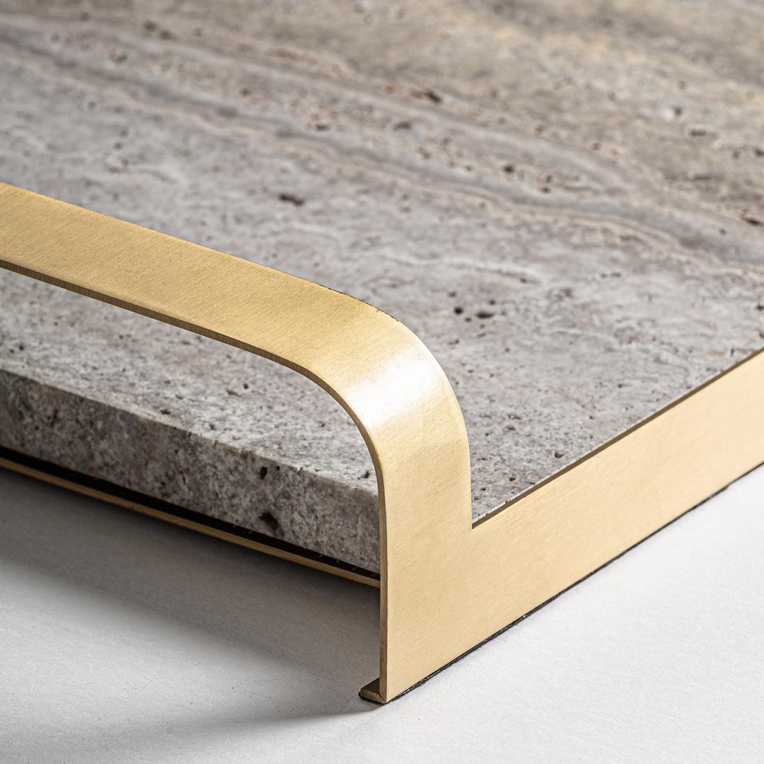 Поднос серо-золотого цвета в стиле арт-деко. Изготовлен из бронзы в сочетании с мрамором.