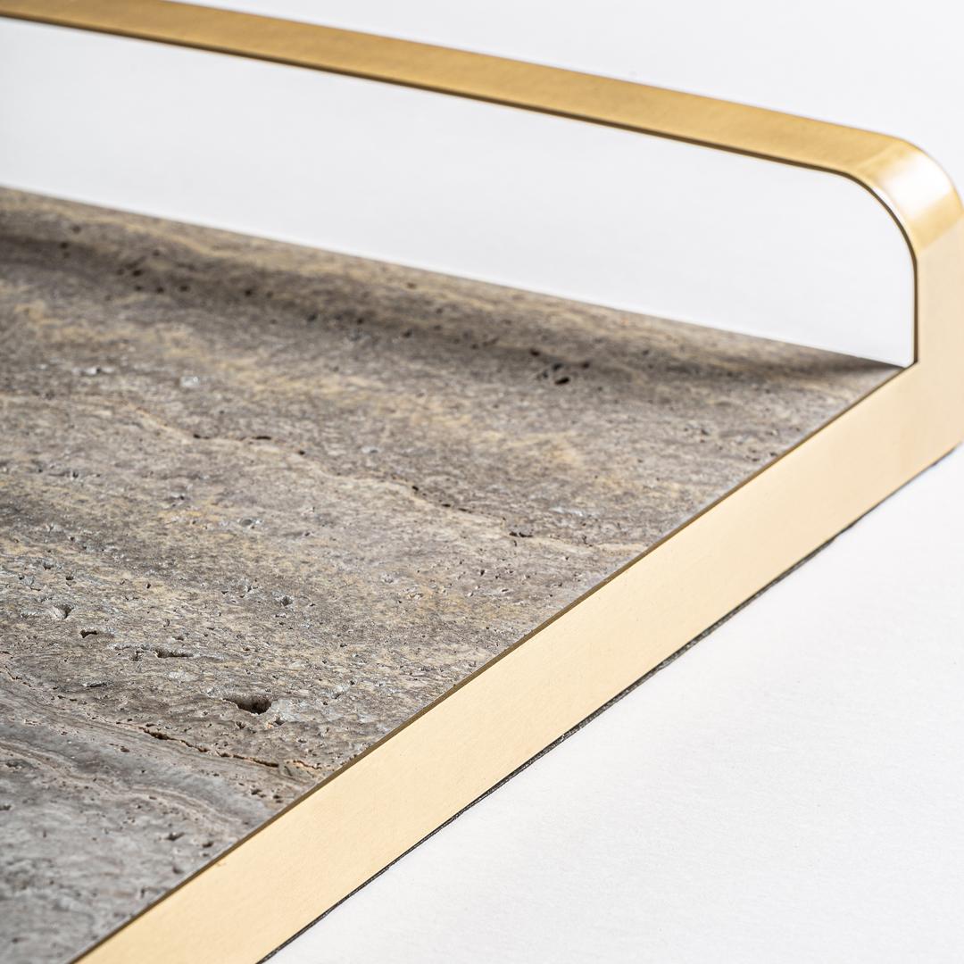 Поднос серо-золотого цвета в стиле арт-деко. Изготовлен из бронзы в сочетании с мрамором.