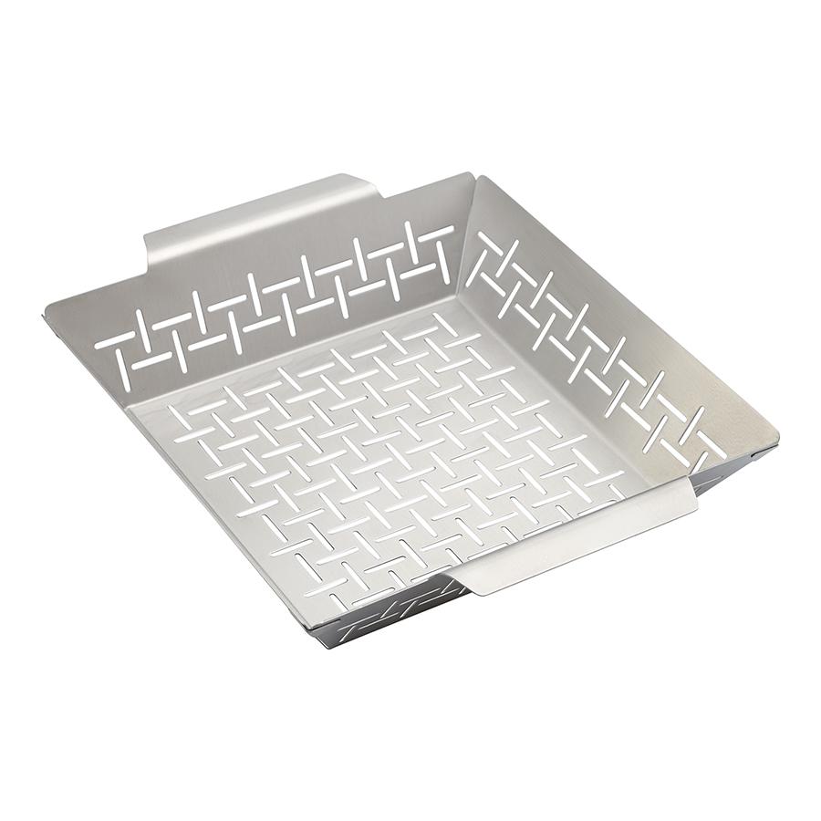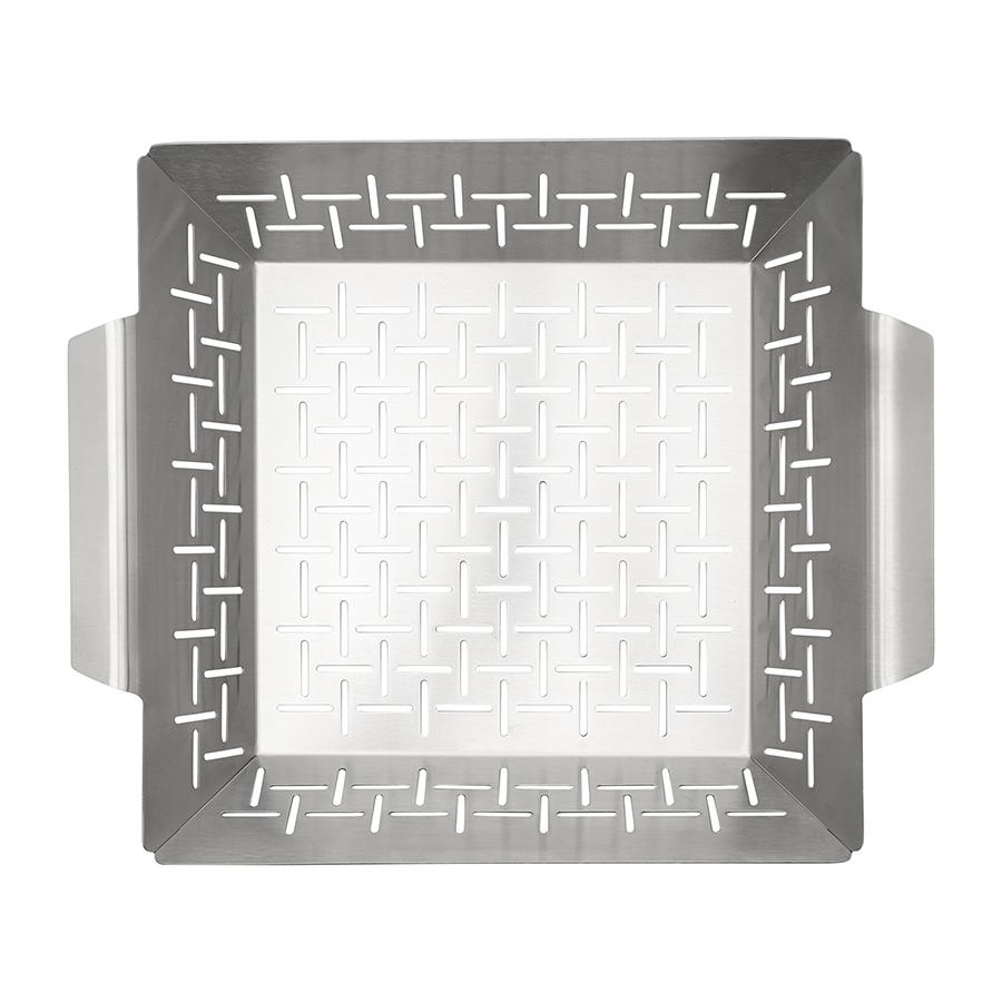 Противень для гриля перфорированный Smart Grill позволяет проявить фантазию и удивить близких разнообразием блюд, приготовленных на открытом огне. Вы можете использовать его для жарки мяса, рыбы, овощей и других продуктов. Особенности и преимущества: - Противень выполнен из нержавеющей стали AISI 430 жаропрочного класса, способной выдерживать воздействие высоких температур – до 850 °C. - Перфорированная поверхность обеспечивает равномерное распределение тепла, идеальную прожарку продуктов, а также удаление лишнего жира. - Наличие ручек позволяет легко перемещать и удерживать противень, а высокие бортики предотвращают высыпание продуктов. Коллекция Smart Grill включает премиальные инструменты для гриля из нержавеющей стали жаропрочного класса. Их основное преимущество в оптимальных размерах и толщине металла, что исключает возможность обжечься и позволяет удобно и безопасно проводить все необходимые манипуляции с продуктами. В линейке представлены решения для приготовления любых блюд на огне. Материал: нержавеющая сталь 430. Размеры: 34,5x29x6,7 см. Высота бортов: 6,3 см. Толщина дна: 0,2 см. Размер ручек: 14,5 см. Толщина стали: 1 мм. Можно использовать на открытом огне и мыть в посудомоечной машине.