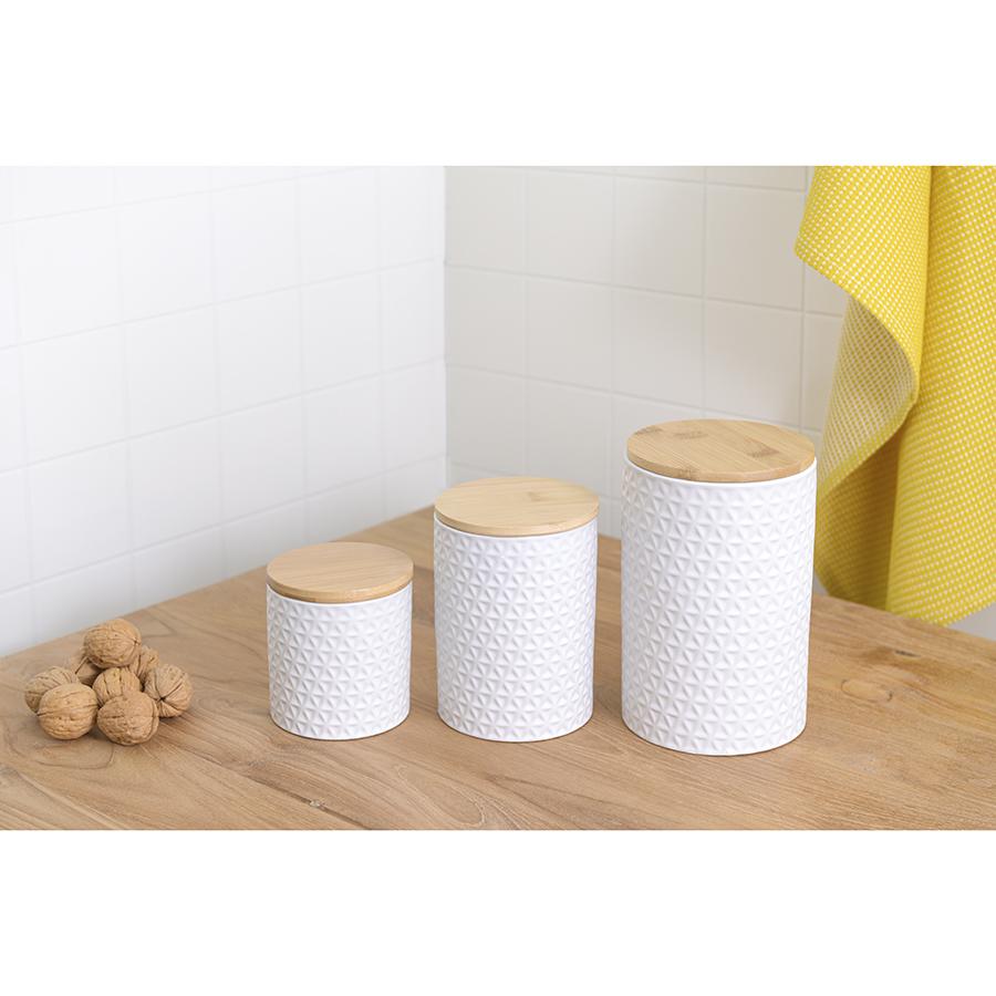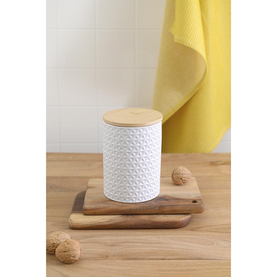 Банка Farah – прекрасный вариант для хранения круп, макаронных изделий, чая, кофе, муки, специй и пр. Емкость из натуральной керамики является экологичной, не пропускает влагу, свет, не меняет вкус и запах продуктов. Крышка из бамбука гармонично завершает силуэт. Такой дизайн великолепно сочетается с различными стилевыми решениями. Материал изготовления обеспечивает изделию устойчивость к износу и долговечность. Наши продукты прошли испытания на отсутствие в составе свинца и кадмия в соответствии со стандартными тестами FDA. Материалы: керамика, бамбук. Размеры: 11х14,8 см. Объем: 900 мл. Цвет: белый. Керамическую емкость можно очищать от загрязнений в теплой воде с помощью мягкой губки с жидким средством. Допускается мытье в посудомоечной машине. Крышку из бамбука мыть не рекомендуется.