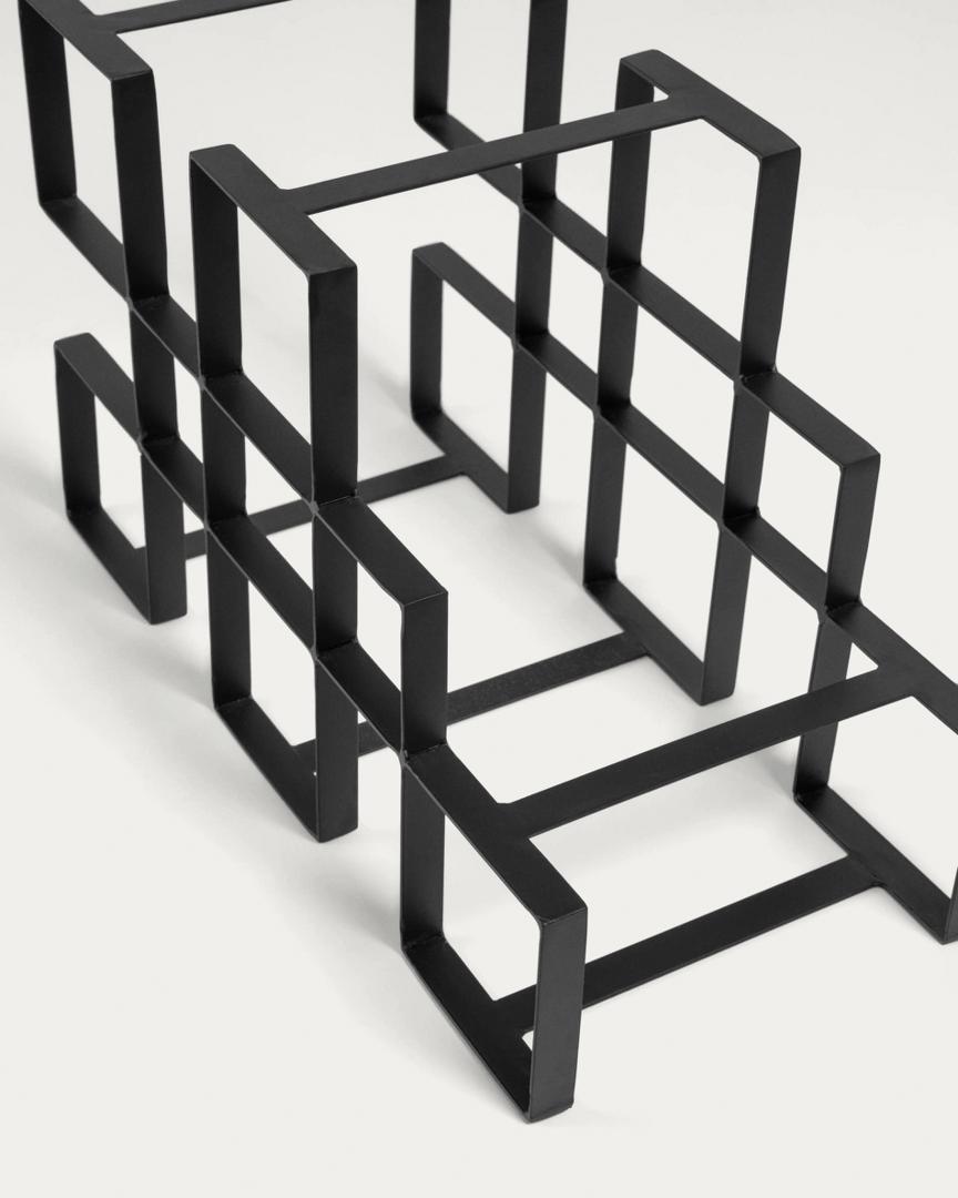 Подставка для бутылок Edur от фабрики La Forma (ex Julia Grup) – когда для хорошего повода лучшее всегда под рукой. Подставка для бутылок Edur – прекрасная возможность разместить больше вина рядом для своей компании. Геометрический дизайн будет актуален для любой современной обстановки, а его утонченная структура позволит выбрать нужное вино по этикетке. Такая подставка – незаменимая вещь, где любят веселье! Подставка полностью сделана из металла, который окрашен в черный цвет матовой порошковой краской. Особая технология нанесения обеспечивает идеально ровную поверхность и защищает металл от коррозии. Проволочная структура образует пять одинаковых квадратных ячеек для бутылок. Нагрузка на каждую ячейку не должна превышать 1 кг. Подставку удобно переносить, она устойчива на любой ровной поверхности. Эксплуатация на улице допускается под навесом и непродолжительное время. Размеры: ширина – 37 см, высота – 23 см, глубина – 18 см. Вес изделия – 1,85 кг. Для изделия требуется деликатный уход, без использования абразивов и длительного воздействия влаги.