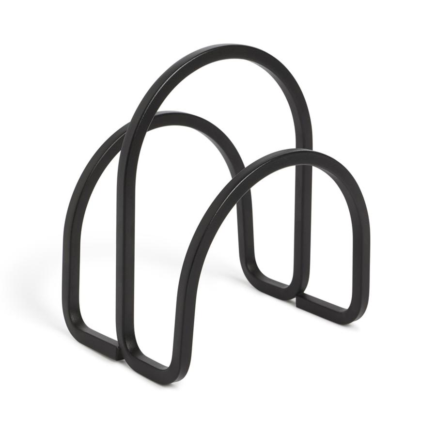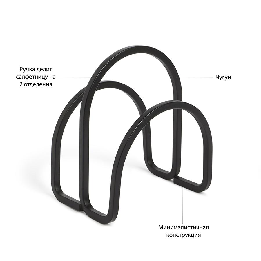 Лаконичный держатель для салфеток поможет навести порядок в обеденной зоне и украсит пространство. Аксессуар выполнен из металла, выгнутого в графическую линию. За счет компактных размеров держатель займет мало места на столе. Встроенный разделитель служит в качестве ручки для удобной переноски салфетницы. Материалы: сталь.
