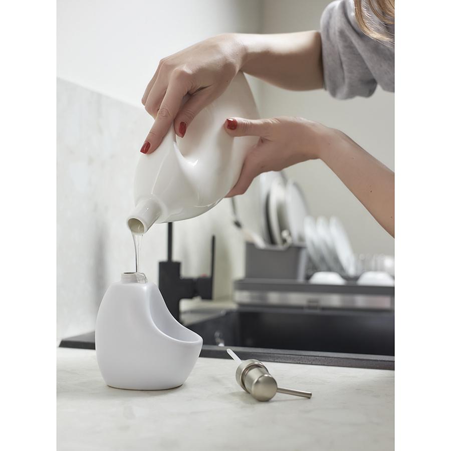 Диспенсер для жидкого мыла Lystad органично впишется в интерьер любой современной ванной комнаты. Емкость выполнена из каменной керамики, что обеспечивает ей привлекательный внешний вид, устойчивость к износу, простой уход и долговечность. Компактные размеры позволяют удобно разместить дозатор на небольшой полке или прямо на раковине. Материал: каменная керамика. Размеры: 11x9x17 см. Объем: 460 мл. Цвет: белый. От загрязнений очищать в теплой воде с помощью мягкой губки с жидким средством. Можно мыть в посудомоечной машине.