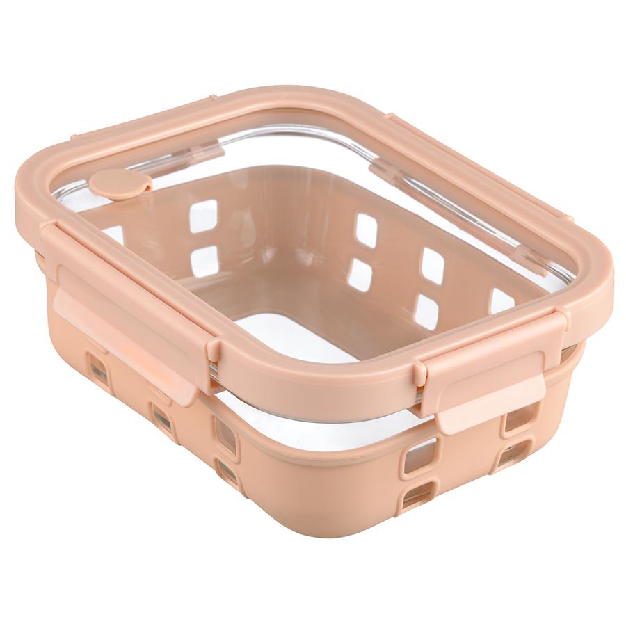 Контейнер стеклянный в чехле из силикона отлично подходит для хранения, запекания и транспортировки продуктов, в том числе готовых блюд. Емкость из боросиликатного стекла не впитывает запахи и загрязнения, легко моется. Крышка с надежными пластиковыми замками на каждой стороне обеспечивает плотное закрывание. Материалы не содержат бисфенол-А и являются абсолютно безопасными для здоровья. Наличие специального вентиляционного отверстия позволяет выпустить лишний воздух или горячий пар, что повышает герметичность и улучшает условия хранения продуктов. Силиконовый чехол предотвращает скольжение, защищает руки от случайных ожогов во время переноски горячих блюд и легко снимается для тщательной очистки контейнера. Материалы: боросиликатное стекло, пластик, силикон. Объем: 1050 мл. Цвет: бежевый. Можно мыть в посудомоечной машине, ставить в морозильную камеру и микроволновую печь. В духовке использовать без крышки при температуре до 560?. Крышка с силиконовой прокладкой прослужит намного дольше, если очищать ее вручную.