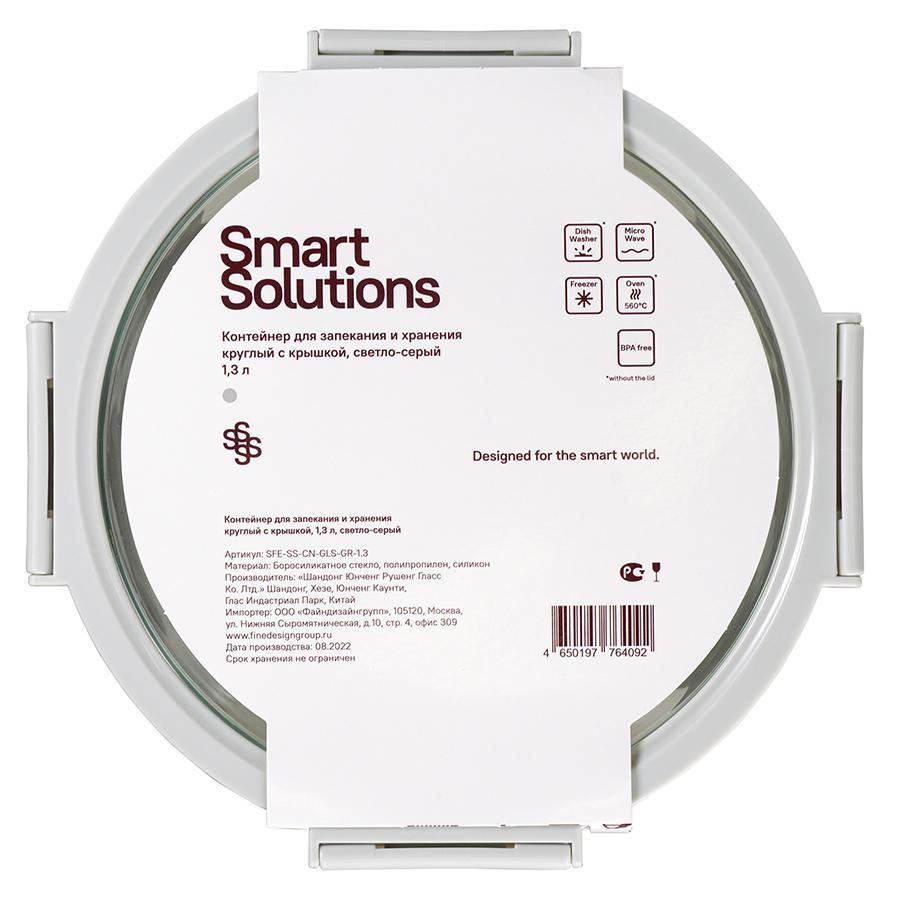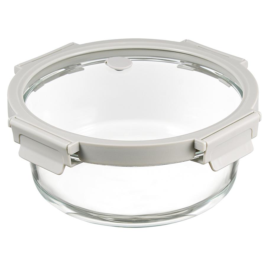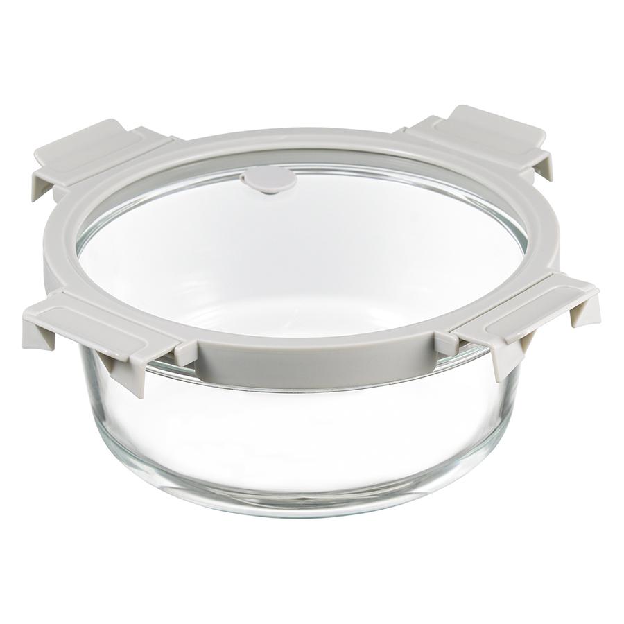 Контейнер ЯЯЯ Контейнер для запекания и хранения круглый click glass, 1,3 л, светло-серый арт. SFE-SS-CN-GLS-GR-1.3