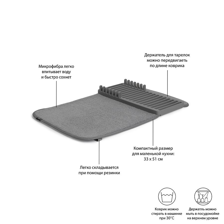 Ковер Umbra Коврик для сушки посуды udry, 33x50,8 см, темно-серый арт. 1004301-149