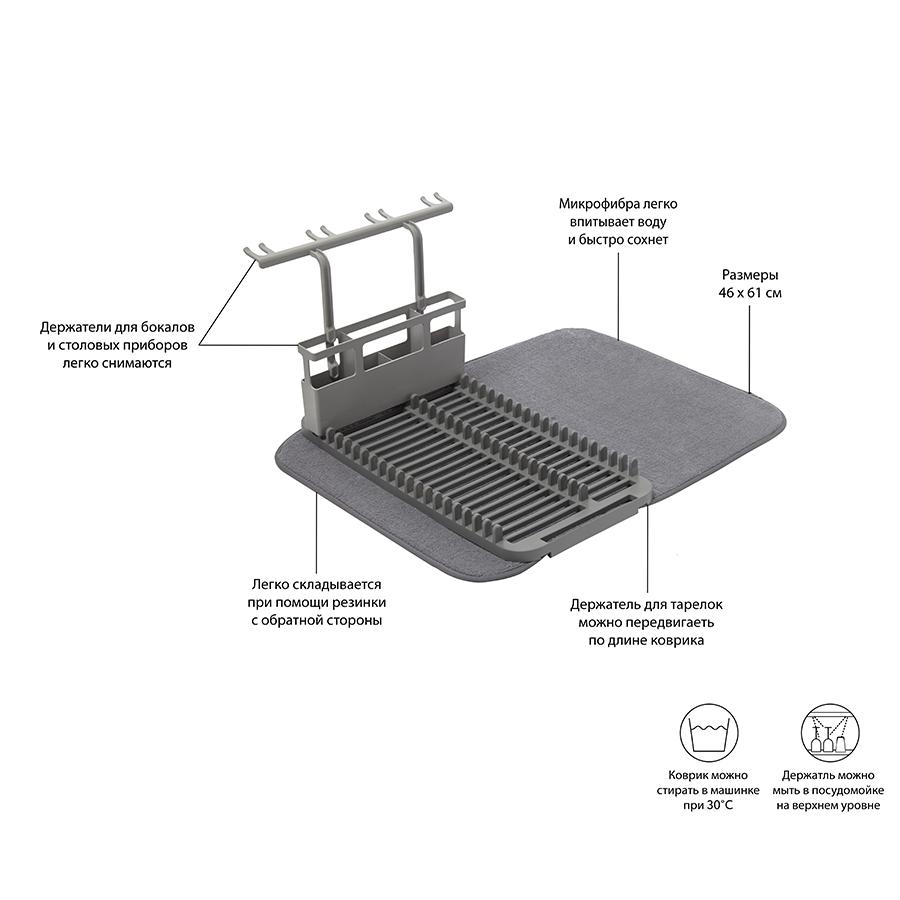 Ковер Umbra Коврик для сушки посуды с подставкой udry, 46х27,3х61 см, темно-серый арт. 1011484-149