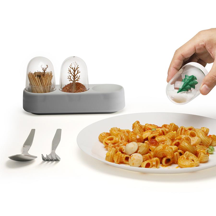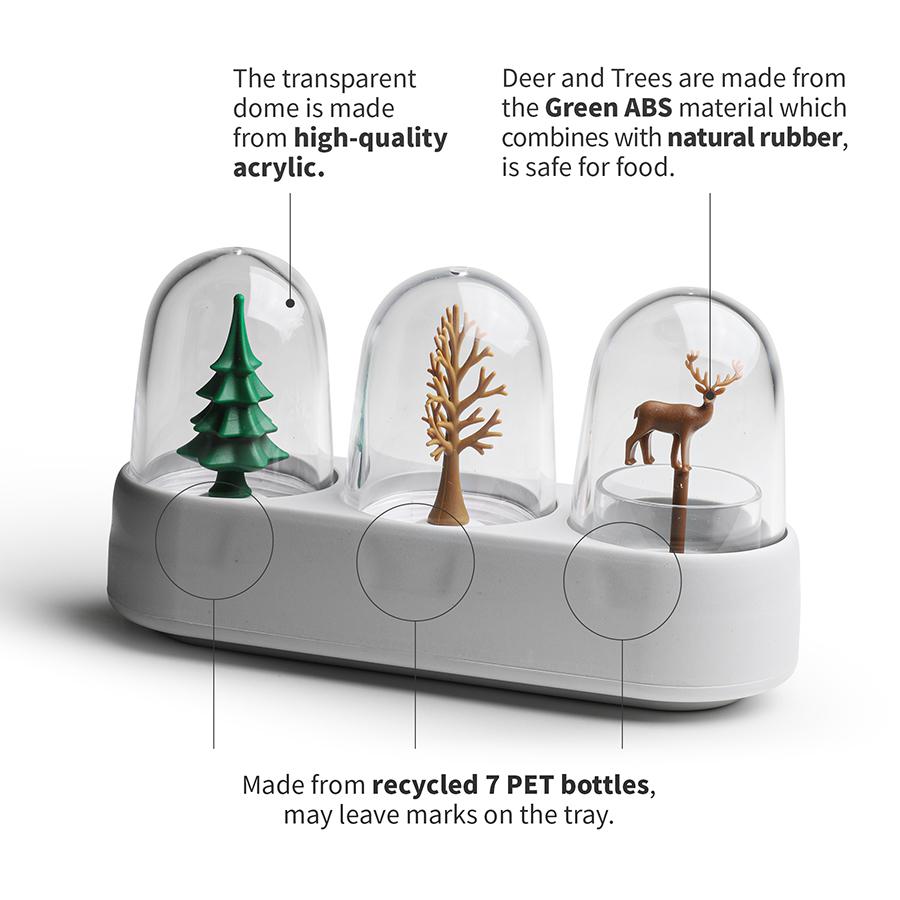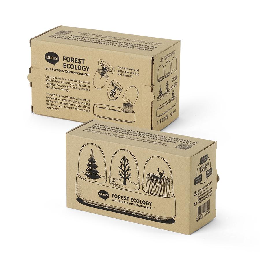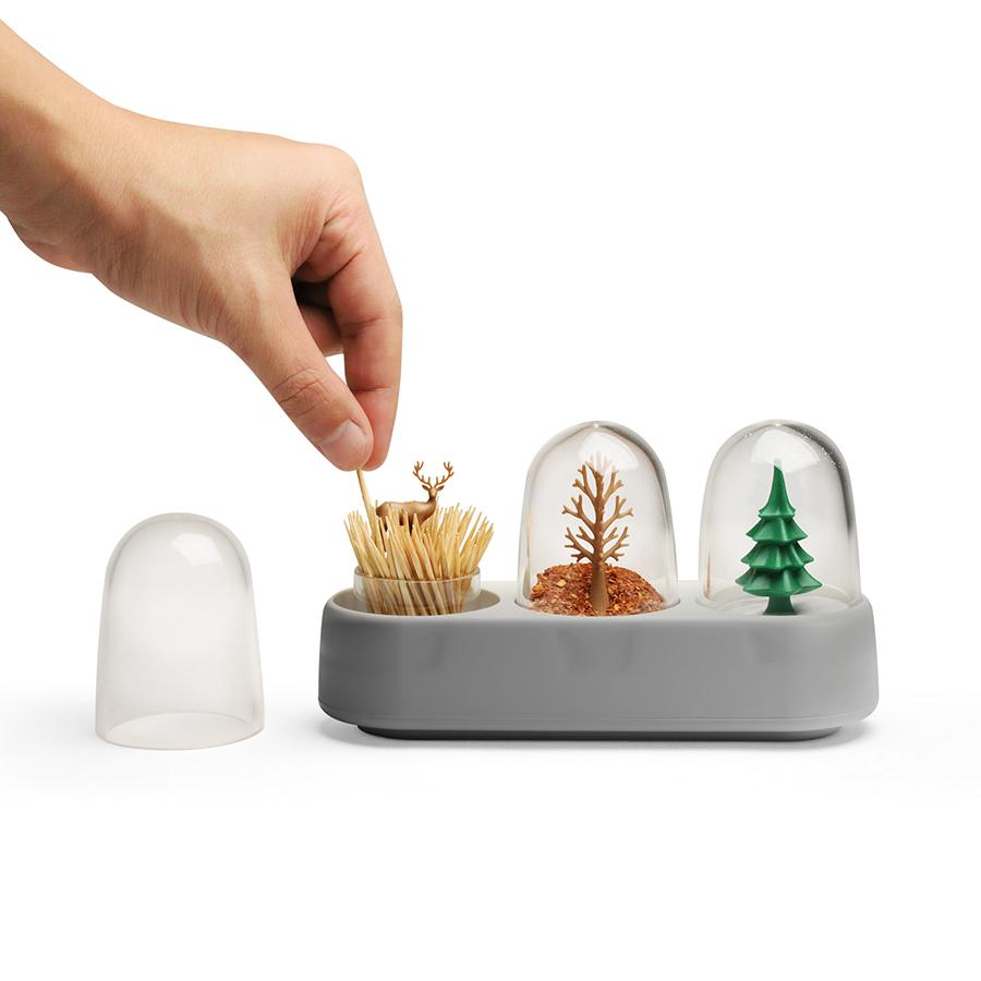 Набор QUALY Набор емкостей для соли, перца, зубочисток с подставкой forest ecology арт. QL10382-CL-GY