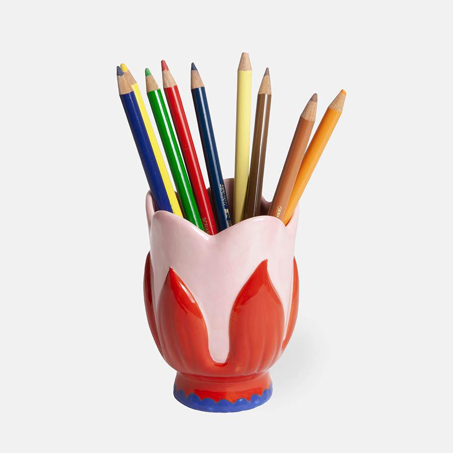 Органайзер Bloom станет интересным акцентом современного интерьера с любым оформлением. Необычный дизайн обеспечивает ему привлекательный внешний вид, а прочная керамика – долгий срок службы. Декоративный предмет идеально подойдет для размещения ручек, карандашей, фломастеров. Особенности и преимущества: - Изготовлен из устойчивой к износу и экологичной керамики. - Имеет необычный дизайн в виде цветка, который привлекает внимание. - Подходит для хранения ручек, карандашей, кистей, письменных принадлежностей. Материал: керамика. Размеры: 8x8x11 см. Рекомендуется мыть вручную при помощи мягкой губки. Запрещается использование абразивных материалов и агрессивной бытовой химии.