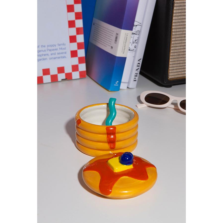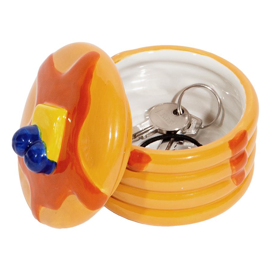 Шкатулка Pancakes из коллекции Good Morning создаст в вашем интерьере красочную атмосферу и поднимет настроение. Выполненная из прочной керамики в виде панкейков, она обязательно привлечет внимание и идеально подойдет для хранения украшений или других мелких предметов. Особенности и преимущества: - Изготовлена из устойчивой к износу и экологичной керамики. - Имеет необычный дизайн в виде панкейков, который привлекает внимание. - Подходит для хранения ценных вещей. Материал: керамика. Размер: 12,5x13x9 см. Рекомендуется очищать при помощи влажной мягкой ткани или мыть вручную при помощи жидкого средства. Запрещается использование агрессивной бытовой химии.
