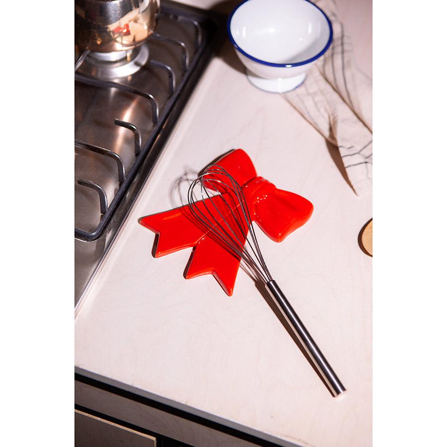 Подставка для ложки Bow создаст в интерьере вашей кухни уютную атмосферу с нотками романтики. Выполненная из керамики в виде элегантного банта, она обязательно привлечет внимание и создаст удобство при приготовлении пищи. Особенности и преимущества: - Изготовлена из устойчивой к износу керамики. - Имеет необычный дизайн в виде банта, который привлекает внимание. - Подходит для частого применения на кухне во время готовки. Материал: бархат. Размер: 13,5x18x2,3 см. Цвет: красный. Рекомендуется мыть вручную при помощи мягкой губки. Запрещается использование абразивных материалов и агрессивной бытовой химии.
