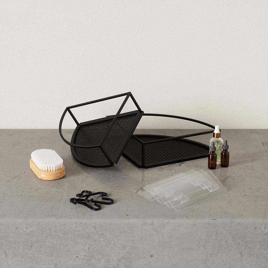 Полки Cubiko сделают интерьер душевой или ванной комнаты более комфортным и функциональным. Изделия из высокопрочной, устойчивой к коррозии стали имеют продолжительный срок службы и сохраняют привлекательный вид долгие годы. Угловые конструкции позволяют грамотно задействовать пространство и благодаря современному дизайну легко интегрируются в любое оформление. В комплекте предусмотрены специальные крючки, которые можно использовать для размещения полотенец, мочалки и других аксессуаров. Полки крепятся на влагостойкие клейкие ленты, которые можно использовать на любых поверхностях, кроме пористых: плитка, гипсокартон, бетон и другие. Материал: сталь. Размеры: 23x23x8 см. Вес: 860 г. Максимальная нагрузка: 4,5 кг. Цвет: черный. Пыль и загрязнения с поверхностей можно удалять при помощи мягкого влажного материала.