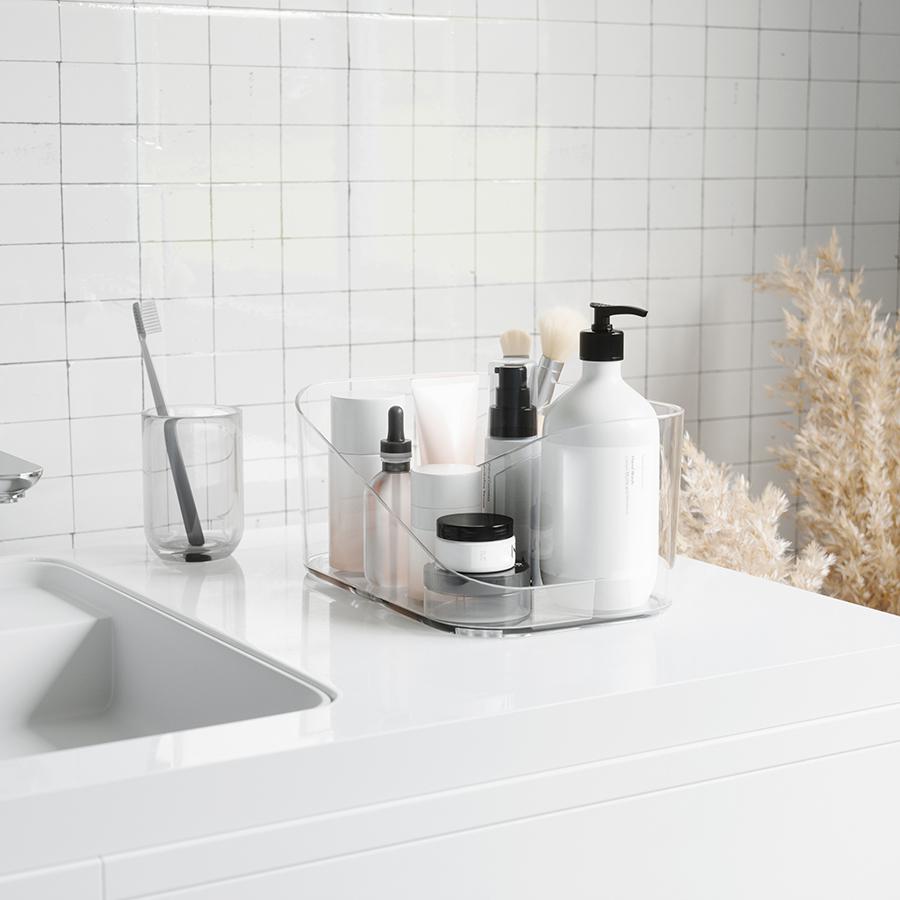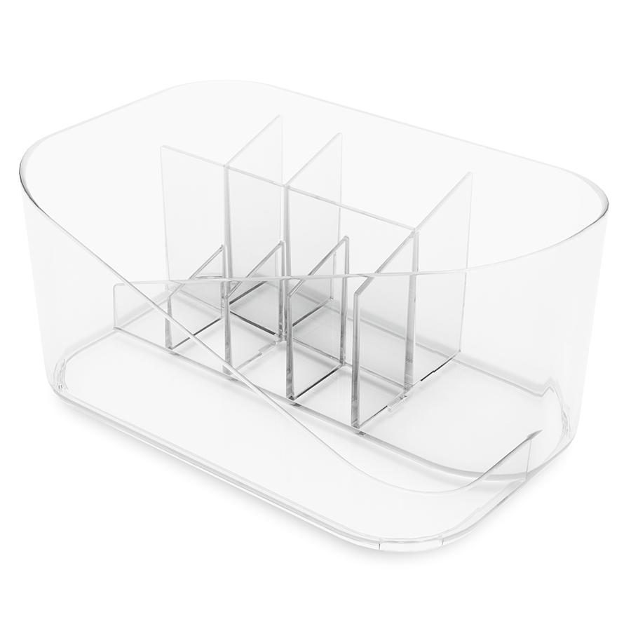 В органайзере Glam можно хранить все необходимое для повседневного макияжа благодаря отделениям разного размера и съемной вставке. Легкий, компактный и удобный в использовании, он обеспечивает быстрый доступ к необходимым средствам, не занимает много места в ванной и на туалетном столике. Материал: полистирол. Размеры: 17х27х13 см. Цвет: прозрачный. Пыль и загрязнения можно удалять при помощи мягкого влажного материала. Запрещается использование абразивов и агрессивной бытовой химии.