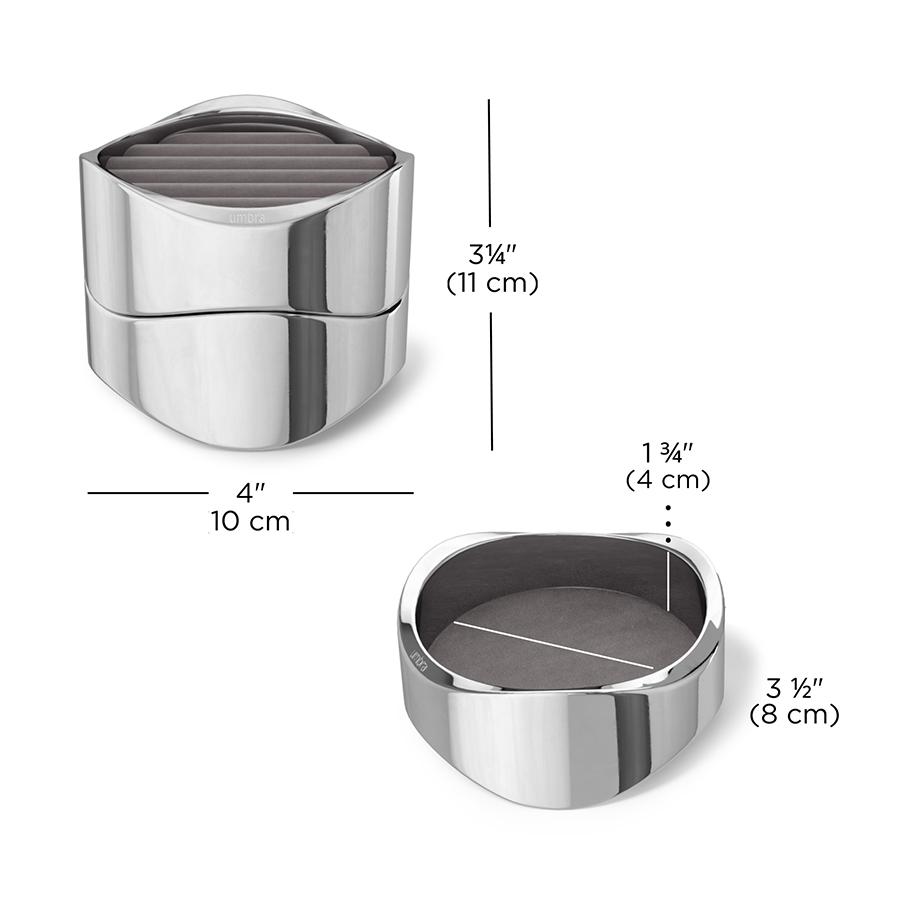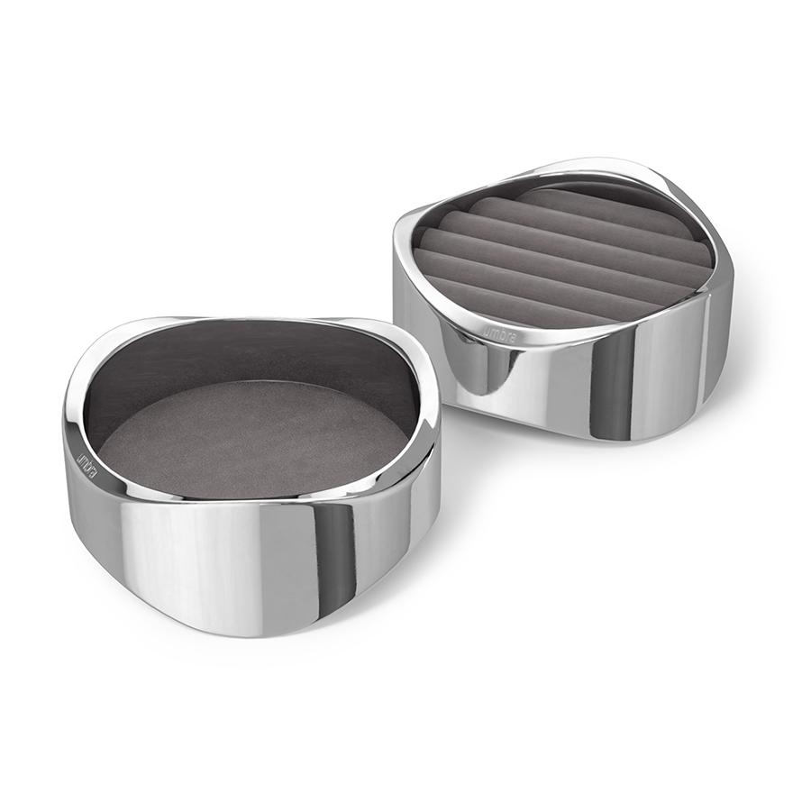 Органайзер для украшений Wavy – великолепное сочетание элегантности и функционального дизайна. Выполненный в цвете “хром”, он станет стильным акцентом на вашем туалетном столике и будет прекрасно гармонировать с другим декором. Органайзер имеет разборную конструкцию – вы можете легко разделить его на две составные части, каждая из которых имеет мягкое, бархатистое основание для бережного хранения колец, сережек и браслетов. Материалы: алюминий, бархат. Размеры: 10х10х8 см. Цвет: хром. Пыль и загрязнения можно удалять при помощи мягкого влажного материала. Запрещается использование абразивов и агрессивной бытовой химии.