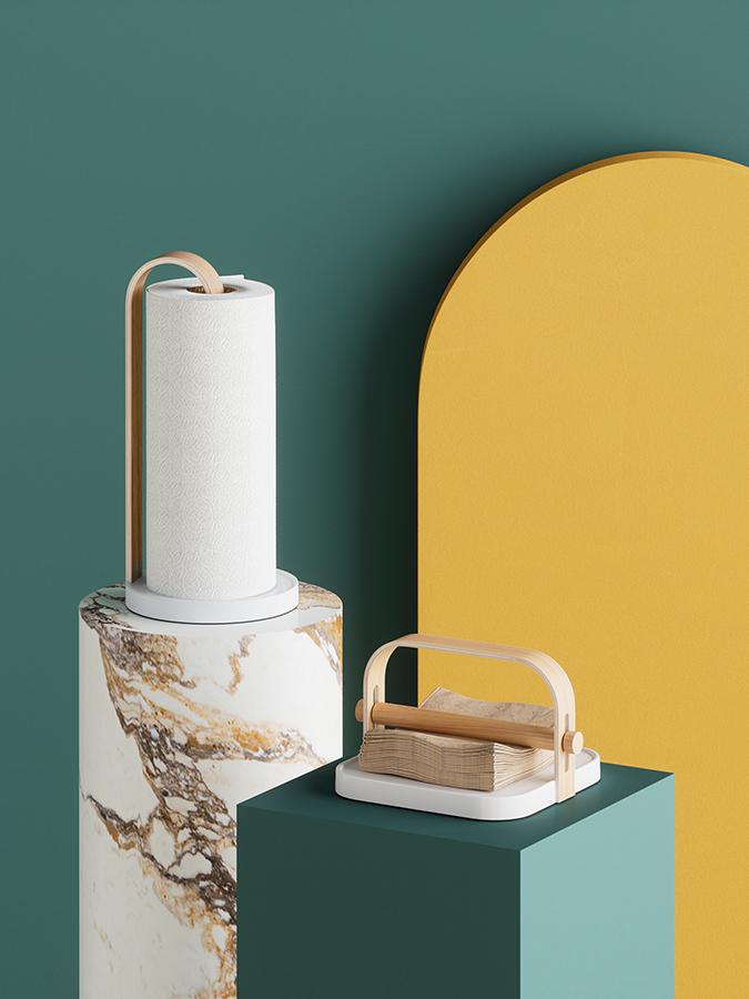 Держатель для бумажных полотенец Bellwood привнесет в интерьер кухни нотки элегантности и природного очарования. Конструкция имеет прочное металлическое основание, а очарование модели придает фирменный акцент из гнутой древесины. Держатель отличается компактными размерами и не занимает много места на столешнице. Материалы: тополь, сталь, ясень, бетон, ABS-пластик, этиленвинилацетат. Размеры: 17х17х31 см. Цвет: белый/натуральное дерево. Пыль и загрязнения можно удалять при помощи мягкого влажного материала. Запрещается использование абразивов и агрессивной бытовой химии.