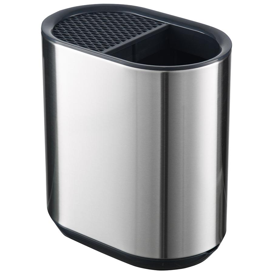 Atle – стильный органайзер для кухонных принадлежностей со специальным отделением для безопасного хранения ножей. Корпус изделия выполнен из практичного и устойчивого к износу АБС-пластика и нержавеющей стали. Покрытие имеет защиту от отпечатков пальцев. Компактные размеры позволяют размещать контейнер в любом удобном месте. Материалы: АБС-пластик, нержавеющая сталь. Размеры: 18х11,5х19,5 см. Цвет: серебристый. Пыль и загрязнения с поверхности рекомендуется удалять при помощи мягкого влажного материала.