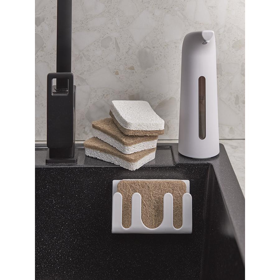 Держатель Jaw поможет компактно разместить губку для мытья посуды, освободив полезное пространство на раковине. Особенности и преимущества: - Изделие из полипропилена обладает прочностью и износостойкостью. - Материал легко моется и долго сохраняет привлекательный вид. - Держатель крепится к стене при помощи специального стикера, который не оставляет следов на поверхности и выдерживает нагрузки до 3 кг. Материалы: полипропилен. Размеры: 12,5х4,5х7 см. Цвет: белый. Рекомендуется очищать от загрязнений при помощи мягкого влажного материала.