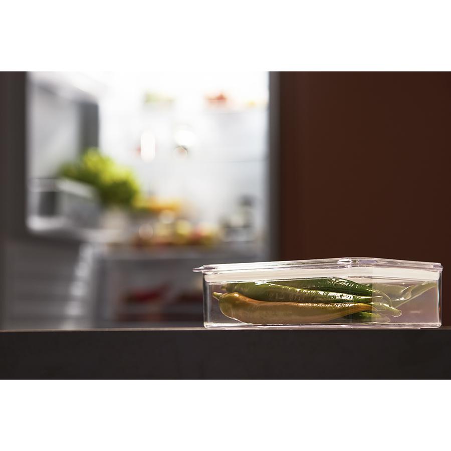 Контейнер герметичный Keep in от бренда Smart Solutions поможет сохранить свежесть продуктов в течение длительного времени. Он идеально подойдет для хранения фруктов, овощей и готовой еды в холодильнике, а также для круп, муки, макаронных изделий, орехов, сухофруктов, приправ и многого другого. Особенности и преимущества: - Контейнер выполнен из SAN-пластика, который обладает высокой прочностью, не впитывает запахи и не вступает в химическую реакцию с продуктами. - Прозрачные стенки позволяют видеть содержимое, исключая необходимость каждый раз открывать крышку. - Крышка по периметру оснащена силиконовым уплотнителем, благодаря чему обеспечивает плотное закрывание. - Наличие специального клапана дает возможность выпустить из емкости лишний воздух, что улучшает герметизацию. - Современный минималистичный дизайн делает контейнер прекрасным дополнением любого кухонного интерьера. Материалы: пластик SAN, силикон. Размеры: 14,5х9х6 см. Объем: 450 мл. Контейнер можно мыть в посудомоечной машине и подвергать заморозке. Запрещается использование в микроволновой печи.