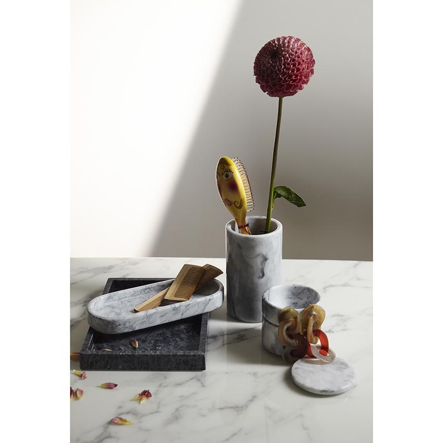 Коллекция Marm сочетает в себе естественную красоту природных материалов и утонченность классического дизайна. Аксессуары из мрамора привносят в оформление интерьера нотки элегантности, подчеркивая безупречный вкус хозяев дома. Уникальные узоры и оттенки натурального камня делают каждый предмет неповторимым. Органайзер Marm поможет навести порядок на кухне и станет акцентным элементом интерьера. Помимо внешней привлекательности, органайзер из мрамора отличается высокими прочностными характеристиками и долговечностью. Изделие сохраняет первозданный вид на протяжении долгих лет, не требуя специального ухода. Аксессуар цилиндрической формы имеет устойчивое основание, что обеспечивает удобное и безопасное хранение кухонных принадлежностей. Дизайн актуален для большинства популярных интерьерных стилей: минимализм, арт-деко, неоклассика, сканди, фьюжн и других. Материал: мрамор. Размеры: 10х10х17 см. Цвет: белый. Пыль и загрязнения рекомендуется удалять при помощи мягкого влажного материала. Запрещается использование абразивов, агрессивной бытовой химии и чистящих средств на основе кислот.