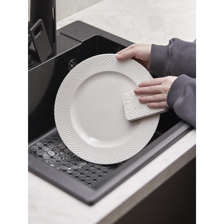 Коврик Grid поможет предотвратить появление на кухонной мойке сколов и царапин, а также защитить посуду от прямого контакта с жесткой поверхностью раковины. Особенности и преимущества: - Коврик из ПВХ отличается прочностью, устойчивостью к износу, хорошо очищается от загрязнений. - Не боится воздействия влаги, бытовой химии и адаптируется под любые размеры мойки – вы можете легко отрезать нужное количество звеньев, не испортив внешний вид изделия. - Благодаря наличию отверстий не создает препятствий для слива воды, а отсутствие жестких ребер и выступов предотвращает появление брызг. Обращаем ваше внимание, что новый коврик может иметь небольшой производственный запах, который полностью исчезает примерно на 3-й день эксплуатации. Материал: ПВХ. Размеры: 31,5х27,5 см. Цвет: серый. Можно мыть в посудомоечной машине.