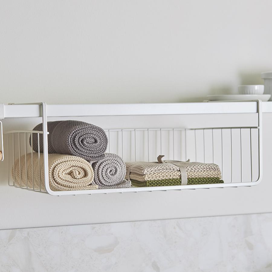 Корзина подвесная Granli обеспечит удобное и компактное хранение кухонных аксессуаров, посуды, продуктов питания, принадлежностей для ванной, полотенец и любых других предметов. Особенности и преимущества: - Быстро и просто крепится на полке или дверце шкафа, не требуя сверления стен. - Имеет прочный и надежный железный каркас и антикоррозионное покрытие. - Аксессуар белого цвета прекрасно сочетается с предметами любых оттенков. Материал: железо. Размеры: 38,8х24,5х15 см. Максимальная нагрузка: 1 кг. Максимальная толщина поверхности для крепления корзины в пределах 4,1 см. Цвет: белый. Пыль и загрязнения с поверхностей можно удалять при помощи мягкого влажного материала. После очищения корзину рекомендуется вытереть сухой тканью.