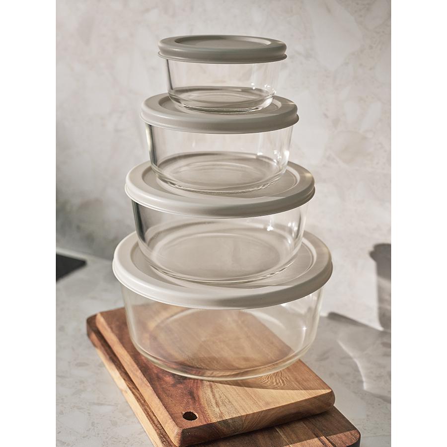 Контейнеры от бренда Smart Solutions – готовое решение для хранения продуктов и приготовления различных блюд в духовке. Особенности и преимущества: - Емкости из прочного боросиликатного стекла не боятся перепадов температуры, обладают устойчивостью к износу и химическим воздействиям, легко моются. - Материал не содержит токсинов и бисфенола-А, не имеет запаха, не меняет вкус еды. - Крышки защищают содержимое от заветривания и попадания внутрь посторонних предметов. Их также можно докупить отдельно, в нужном цвете. Материалы: боросиликатное стекло, полиэтилен. Объемы: 236 мл, 472 мл, 944 мл, 1,6 л. Количество предметов в наборе: 4 шт. Можно мыть в посудомоечной машине, ставить в морозильную камеру и микроволновую печь. В духовке использовать без крышки при температуре до 560?.