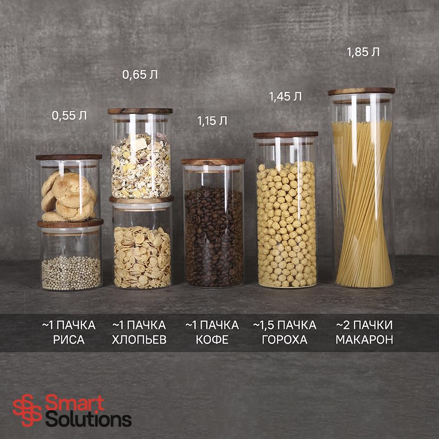 Банка для хранения от бренда Smart Solutions поможет организовать порядок на кухне и будет органично смотреться в интерьере с современным дизайном. Особенности и преимущества: - Емкость из боросиликатного стекла отличается высокой прочностью и устойчивостью к температурным воздействиям. - Крышка выполнена из акации – благородной породы древесины с эффектным внешним видом и отличными эксплуатационными свойствами. - Наличие специальной силиконовой вставки обеспечивает плотное закрывание, защищая содержимое от заветривания и попадания влаги. Материалы: боросиликатное стекло, акация, силикон. Размеры: 10х10х19,6 см. Объем: 1,15 л. Банку можно мыть в посудомоечной машине. Крышку рекомендуется протирать влажной тканью.