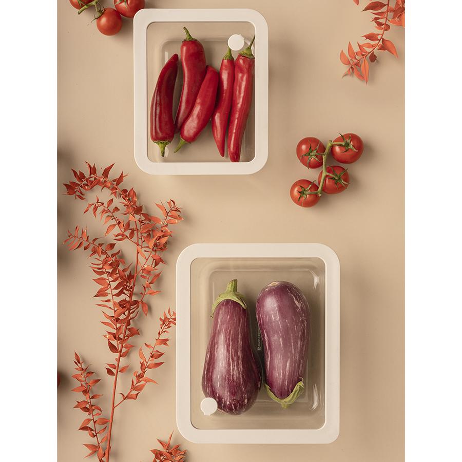 Стеклянный контейнер от бренда Smart Solutions – удобная емкость для хранения продуктов и приготовления блюд в духовке. Крышка контейнера имеет специальное отверстие, через которое можно удалить воздух для создания вакуумного эффекта – это поможет еде дольше оставаться свежей и сохранять свои полезные свойства. Особенности и преимущества: - Боросиликатное стекло устойчиво к температурным перепадам, повреждениям, не впитывает запахи, сохраняет прозрачность и гигиеничность долгие годы. - Крышка с силиконовым ободком плотно прилегает и оснащена специальным отверстием для вывода пара и воздуха. - Материалы не содержат вредных соединений, благодаря чему контейнер идеально подходит для хранения и приготовления пищи. - Вакуумный эффект обеспечивает герметичность, защищая продукты от попадания воздуха и влаги, что продлевает срок их хранения. Материалы: боросиликатное стекло, силикон. Размеры: 20,5х25х8 см. Объем: 2,6 л. Цвет: светло-серый. Можно мыть в посудомоечной машине, ставить в морозильную камеру и микроволновую печь. В духовке использовать без крышки при температуре до 560?.