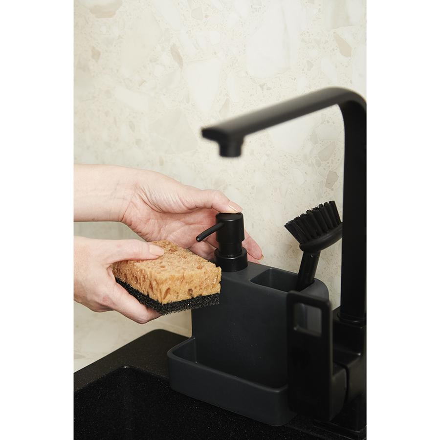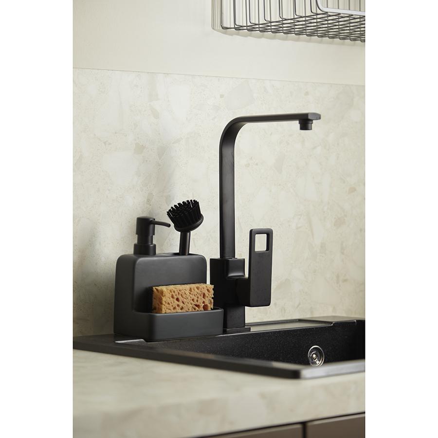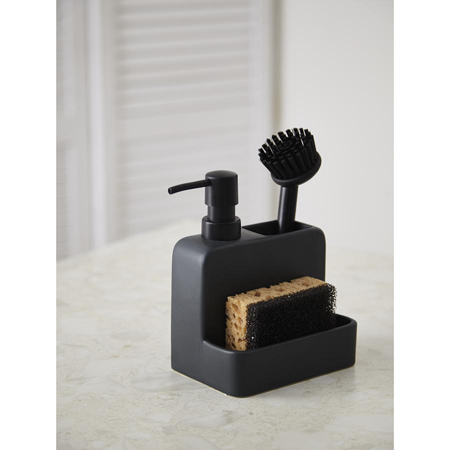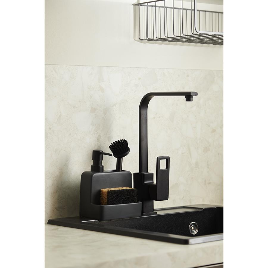 Диспенсер для жидкого мыла Noble сочетает в себе практичность и эстетику, превращая пространство любой кухни в стильный и уютный уголок, где каждая деталь продумана до мелочей. Особенности и преимущества: - Диспенсер выполнен из качественной керамики, что гарантирует ему долговечность, привлекательный вид и простой уход. - Компактность, оптимальный объем и удобный механизм дозирования делают использование максимально комфортным. - В комплекте идет щетка с ручкой из стали и щетинками из устойчивого к износу полипропилена. - В конструкции также предусмотрено место под губку для мытья посуды. - Лаконичный дизайн и благородный цвет графита превращают аксессуар в стильный акцент интерьера. Материалы: диспенсер – керамика, ABS-пластик, полипропилен; щетка – нержавеющая сталь 201, полипропилен. Размеры: 15х9,7х17,5 см. Объем: 280 мл. Цвет: графит. Можно мыть вручную в теплой мыльной воде.