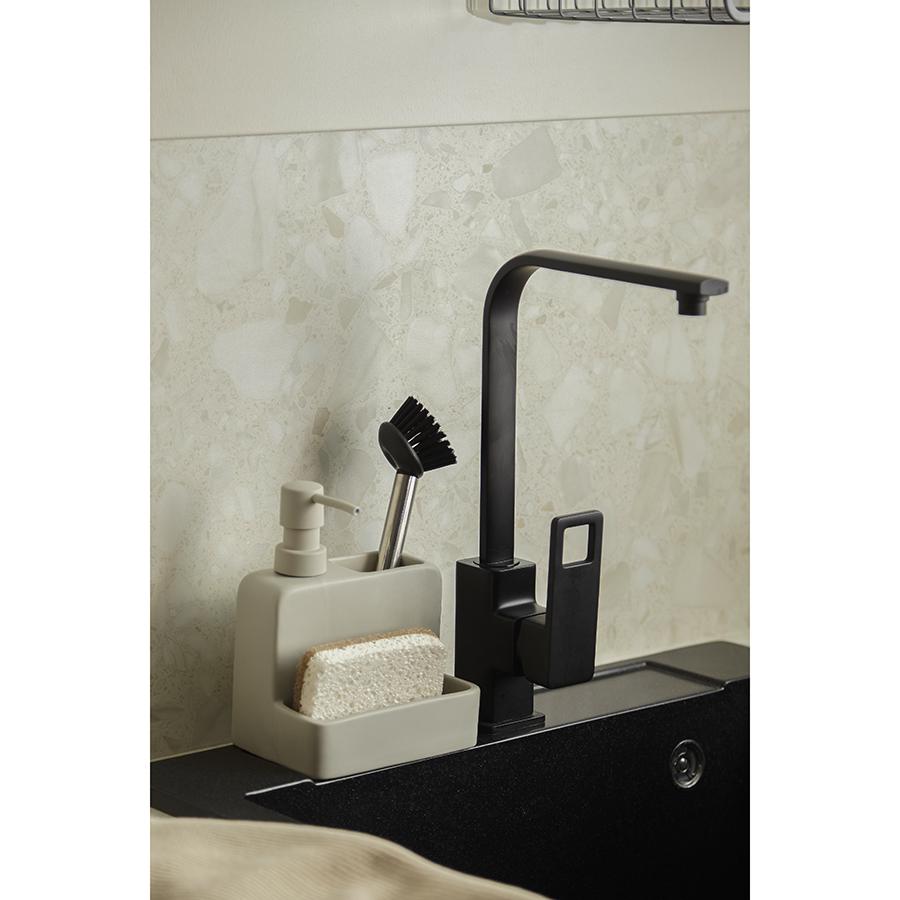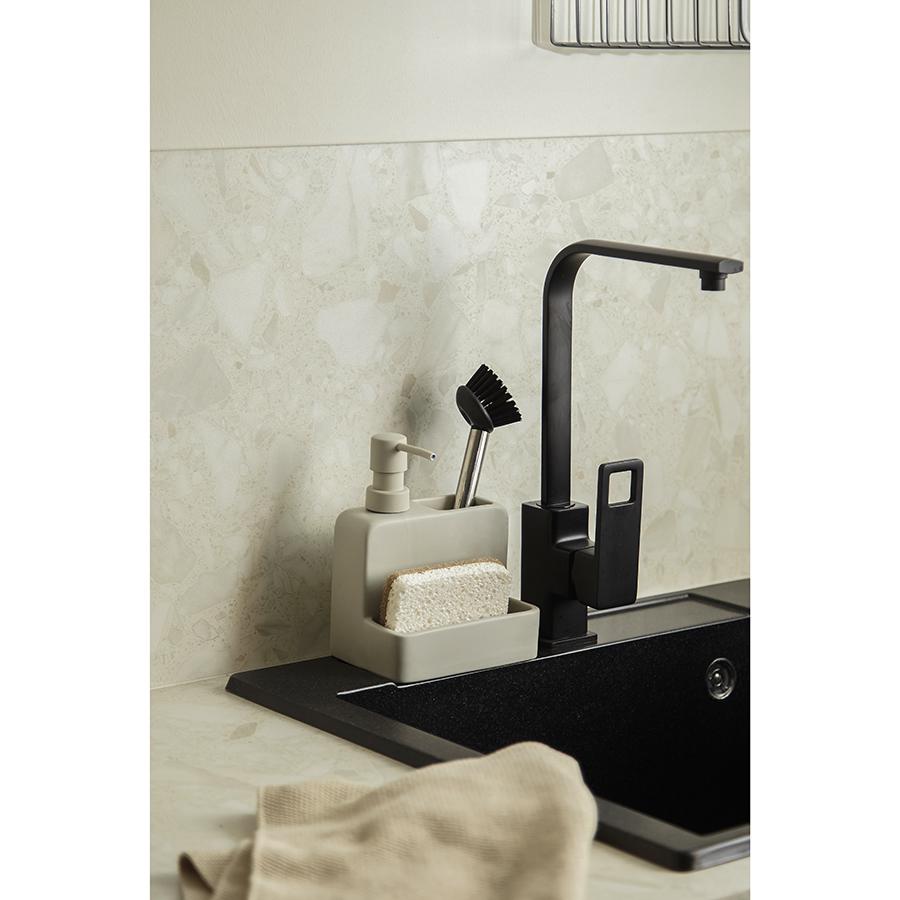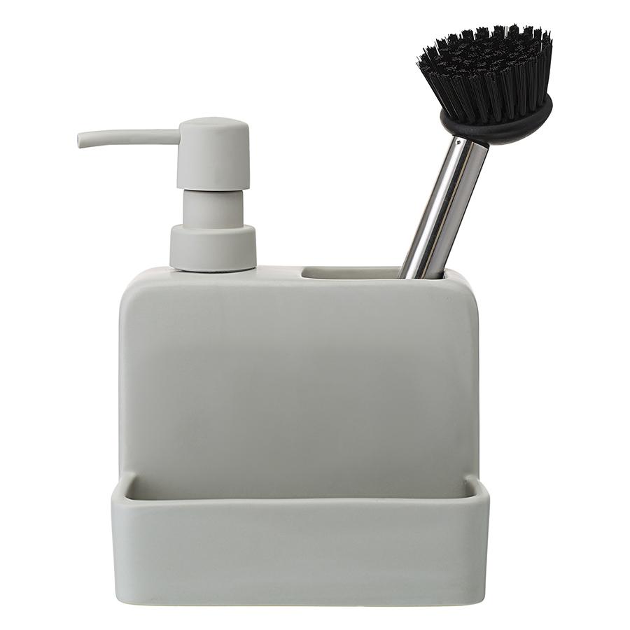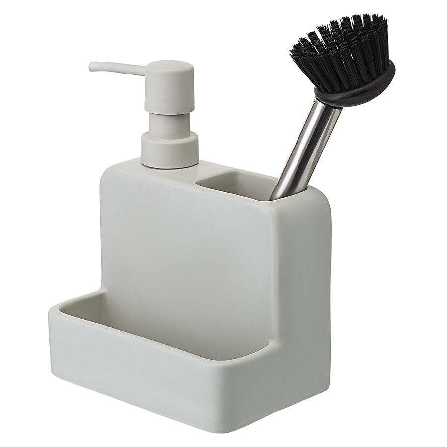 Диспенсер для жидкого мыла Noble сочетает в себе практичность и эстетику, превращая пространство любой кухни в стильный и уютный уголок, где каждая деталь продумана до мелочей. Особенности и преимущества: - Диспенсер выполнен из качественной керамики, что гарантирует ему долговечность, привлекательный вид и простой уход. - Компактность, оптимальный объем и удобный механизм дозирования делают использование максимально комфортным. - В комплекте идет щетка с ручкой из стали и щетинками из устойчивого к износу полипропилена. - В конструкции также предусмотрено место под губку для мытья посуды. - Лаконичный дизайн и нейтральный светло-серый оттенок позволяют вписать аксессуар в различные интерьерные решения. Материалы: диспенсер – керамика, ABS-пластик, полипропилен; щетка – нержавеющая сталь 201, полипропилен. Размеры: 15х9,5х17,5 см. Объем: 280 мл. Цвет: светло-серый. Можно мыть вручную в теплой мыльной воде.
