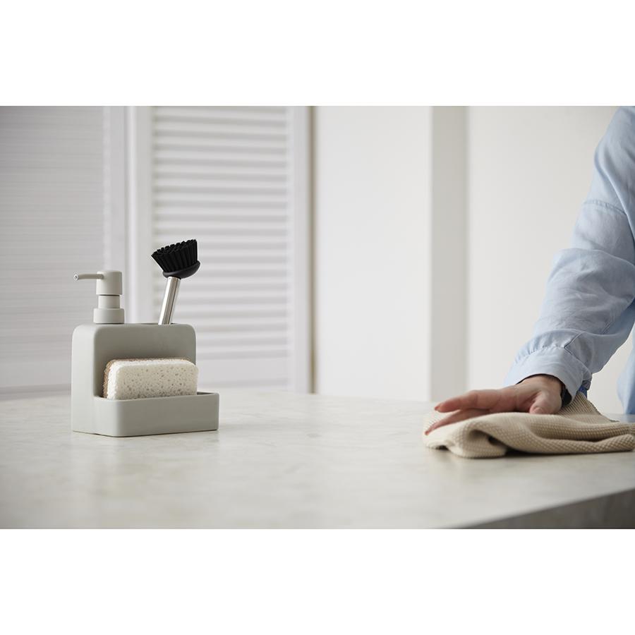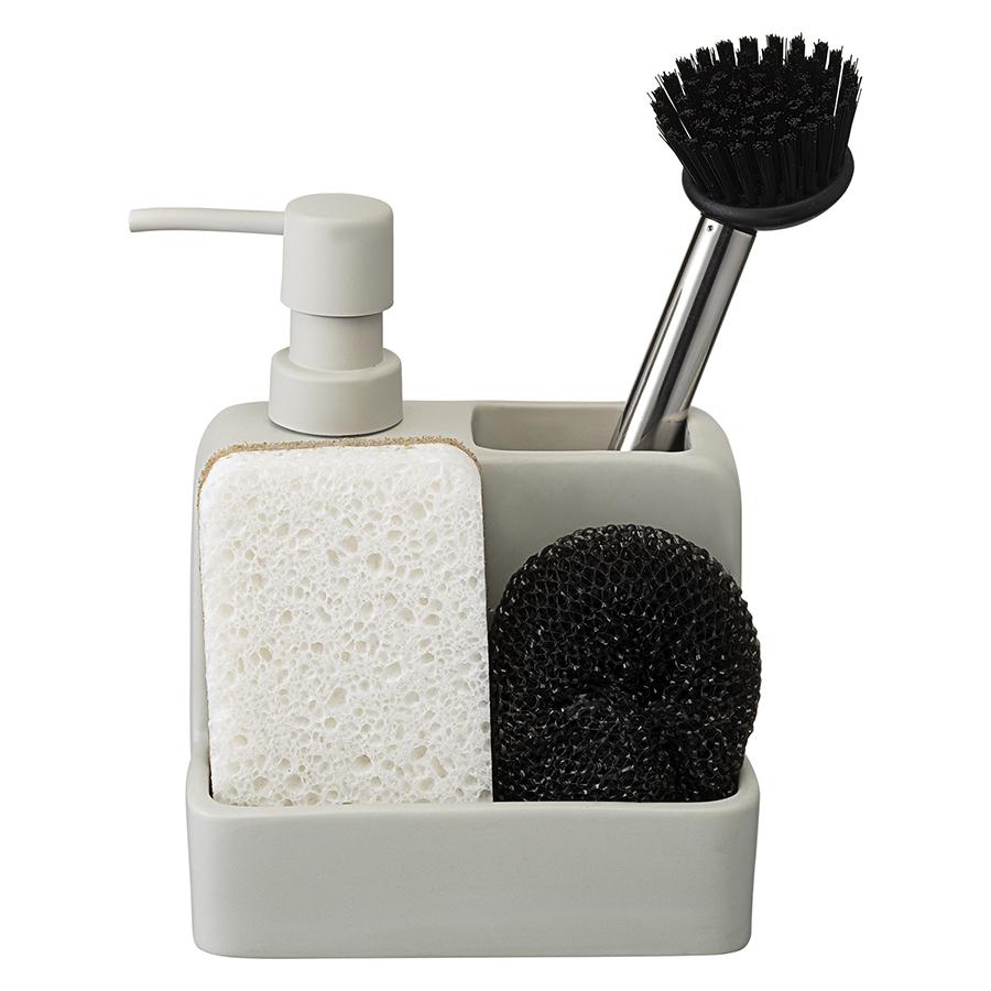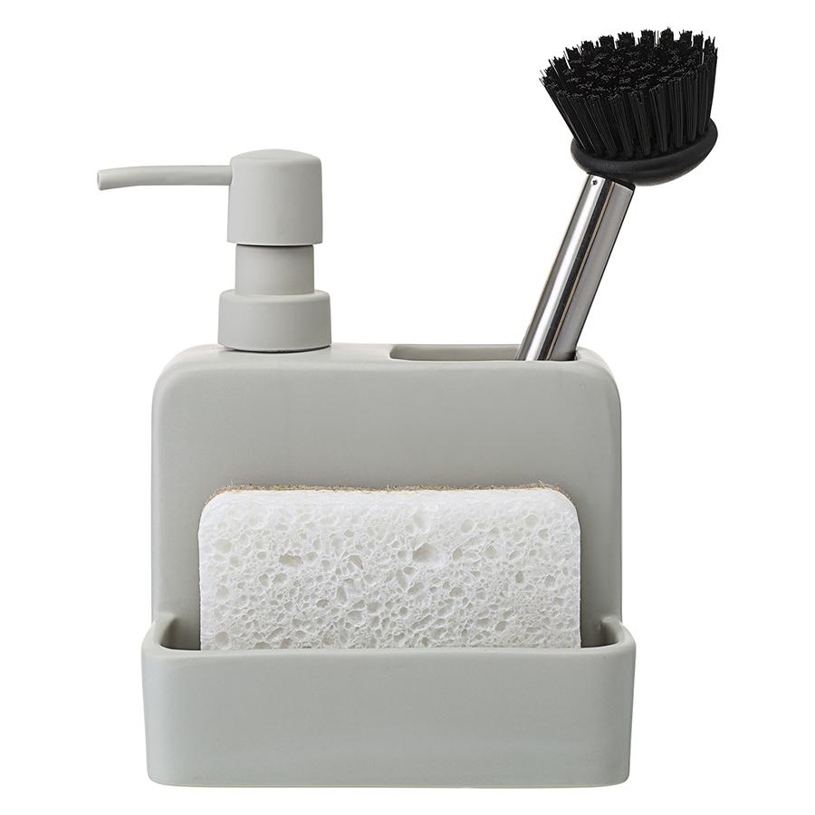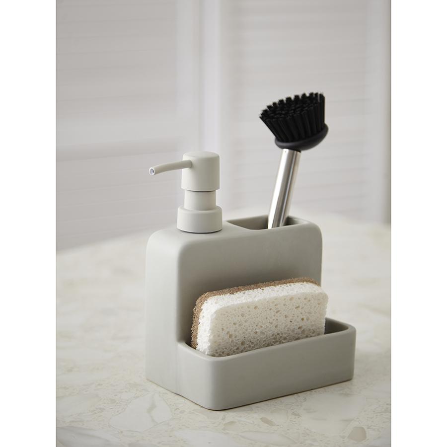 Диспенсер для жидкого мыла Noble сочетает в себе практичность и эстетику, превращая пространство любой кухни в стильный и уютный уголок, где каждая деталь продумана до мелочей. Особенности и преимущества: - Диспенсер выполнен из качественной керамики, что гарантирует ему долговечность, привлекательный вид и простой уход. - Компактность, оптимальный объем и удобный механизм дозирования делают использование максимально комфортным. - В комплекте идет щетка с ручкой из стали и щетинками из устойчивого к износу полипропилена. - В конструкции также предусмотрено место под губку для мытья посуды. - Лаконичный дизайн и нейтральный светло-серый оттенок позволяют вписать аксессуар в различные интерьерные решения. Материалы: диспенсер – керамика, ABS-пластик, полипропилен; щетка – нержавеющая сталь 201, полипропилен. Размеры: 15х9,5х17,5 см. Объем: 280 мл. Цвет: светло-серый. Можно мыть вручную в теплой мыльной воде.