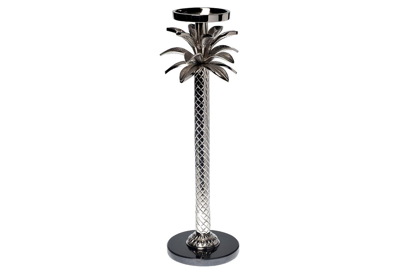 description-full - Этот декоративный подсвечник отличается экстравагантным дизайном и изящной формой. За счет пальмовых листиков из алюминия он выглядит необычно, но при этом остается классическим декором для оформления интерьера в стилистике ар-деко. Подставка из мрамора отвечает за устойчивость конструкции на любых горизонтальных поверхностях, а универсальный металлический блеск гармонирует практически со всеми предметами обстановки. Дизайнерский подсвечник на подставке украсит собой праздничный стол и поможет создать уютную атмосферу в доме или ресторане. Эта модель представлена в каталоге в двух размерах: S и М.