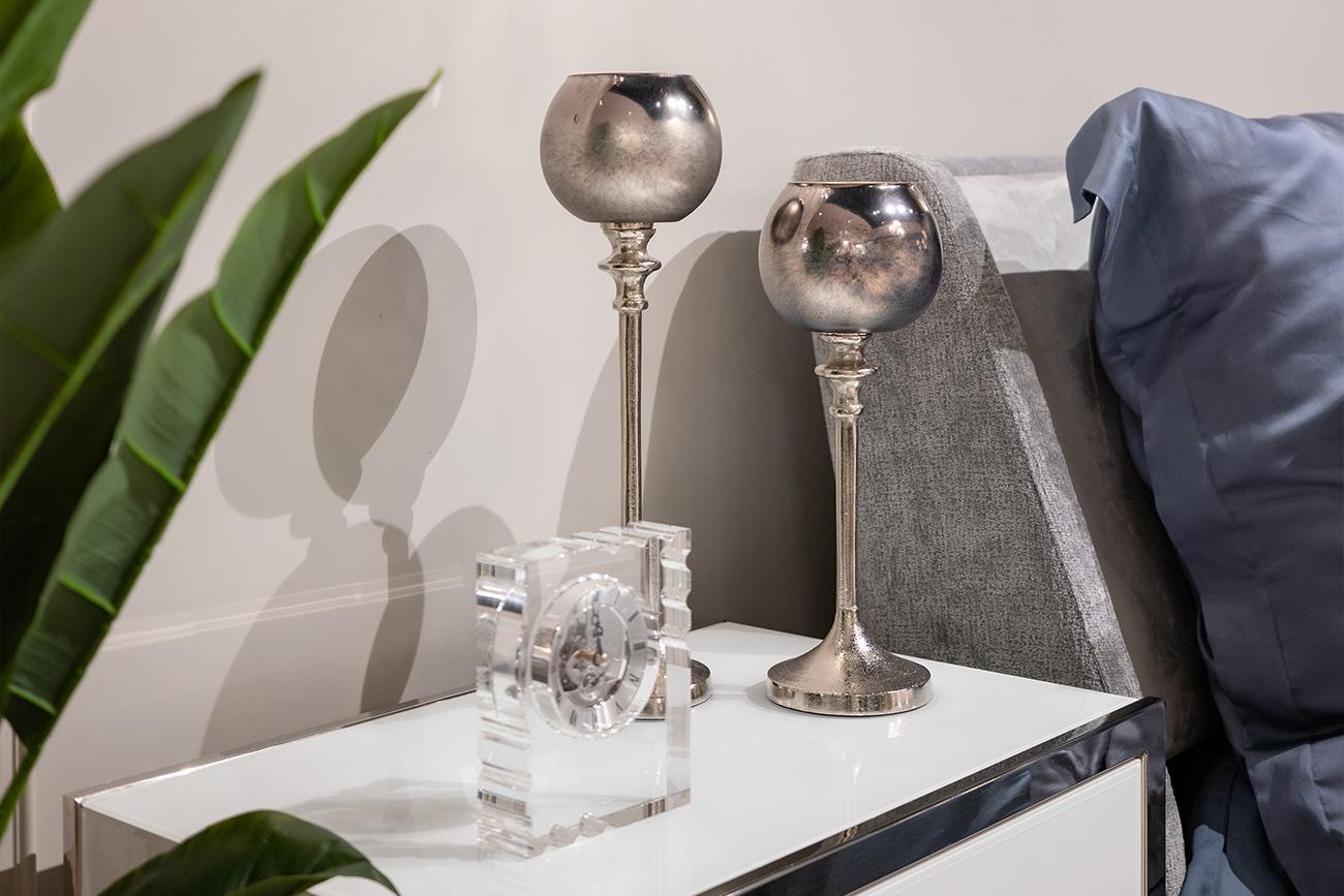 description-full - Декоративный подсвечник из стекла и металла – идеальный декор для интерьера в стиле ар-деко. Легкий, изящный, элегантный в своей простоте. Он украсит собой любой торжество, станет дополнением к новогоднему декору, создаст романтическое настроение и хорошо справится с ролью самодостаточного арт-объекта. Стеклянный подсвечник на высокой металлической ножке ненавязчиво украшает комнату, органично выглядит в компании других декоративных элементов. За счет своей оригинальной формы он придает изысканности и аристократичности даже минималистичному интерьеру. В интернет-магазине компании Garda Decor можно купить высокий подсвечник в двух размерах – 35 и 44,5 см.