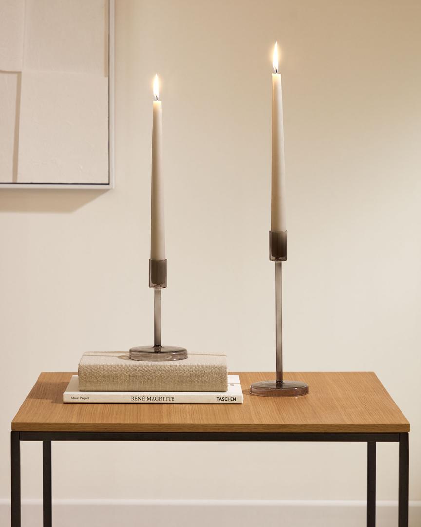 Подсвечник Zulma от фабрики La Forma (ex Julia Grup) – нейтральный дизайн для самых разных обстановок. Пара подсвечников из коллекци Zulma способны сделать каждый момент особенным. Они созданы для того, чтобы привнести стиль и романтику в ваше пространство, но сделать это осторожно, не акцентируя на себе много внимания. Изящные и тонкие, прозрачные и затемненные, они будут смотреться при любой сервировке стола и при разных поводах. Взгляните на горящие свечи по-новому – Zulma мастерски это покажет! Коллекция Zulma состоит из четырех видов подсвечников, которые отличаются между собой цветом и высотой. Материал изготовления – стекло. В зависимости от выбранной модели, оно может быть прозрачным или затемненным. Благодаря широкому основанию, подсвечники будут устойчивы при любом размере свечи. Также основание служит защитой для скатерти от капающего воска. Изделия хрупкие, поэтому требуют бережной эксплуатации, осторожной чистки от пыли и загрязнений. Изделия запрещено мыть в посудомоечной машине. Размеры: ширина – 8,5/ 8,5 см, высота – 25/20 см, глубина – 8,5/ 8,5 см. К данным подсвечникам подойдут длинные конусообразные свечи в нейтральной цветовой гамме.