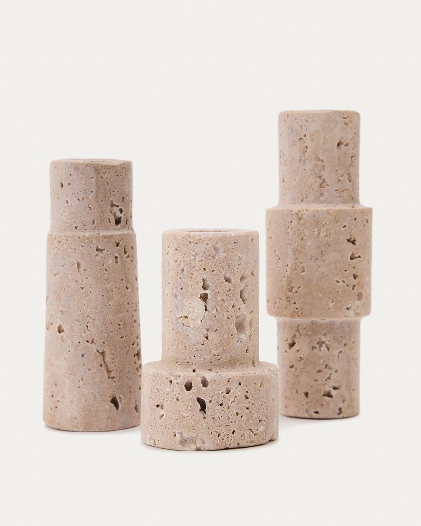 Подсвечник La Forma (ех Julia Grup) Набор Majid из 3-х подсвечников из бежевого травертина арт. 210380