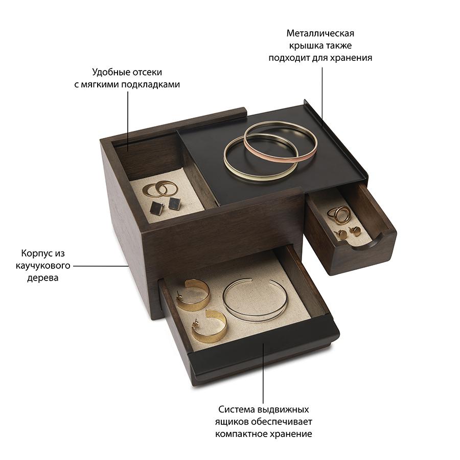 Шкатулка Umbra Шкатулка stowit mini, черная/орех арт. 1005314-048