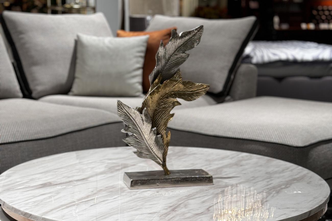 description-full - Металлическая статуэтка "Листья" – это не просто имитация природного мотива, это абстрактное воплощение самой идеи роста и великолепия. Застывшие в металле листья словно стремятся ввысь, придавая ощущение динамики и энергии. В современном интерьере, где актуальны скульптурные формы и натуральные материалы, эта композиция станет выразительным акцентом. Ее можно разместить в гостиной, кабинете или холле, где игра света на металле подчеркнет глубину и сложность силуэта. Это не просто декоративный элемент, это трехмерная поэма о красоте природы, переведенная на язык современного искусства.