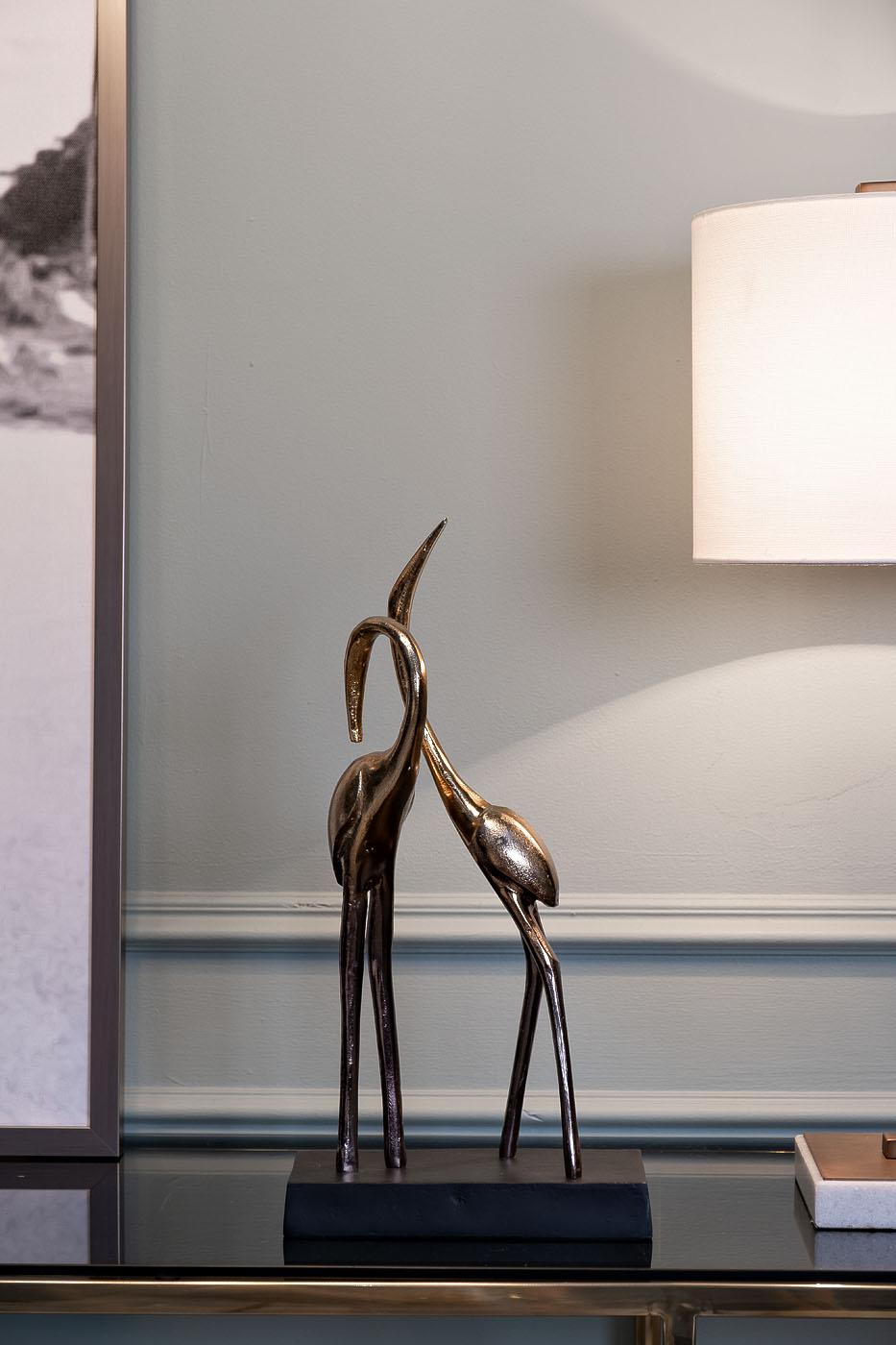 description-full - Изящная золотая статуэтка двух грациозных цапель — символ верности и гармонии. Лаконичный силуэт и благородный золотой оттенок делают её стильным арт-объектом и роскошным подарком. Переливы металла создают динамику, а тонкие линии передают лёгкость и движение. Эта статуэтка цапли украсит рабочее пространство, гостиную или спальню, добавляя интерьеру утончённости. Такой аксессуар привнесёт в дом ощущение спокойствия и благополучия.