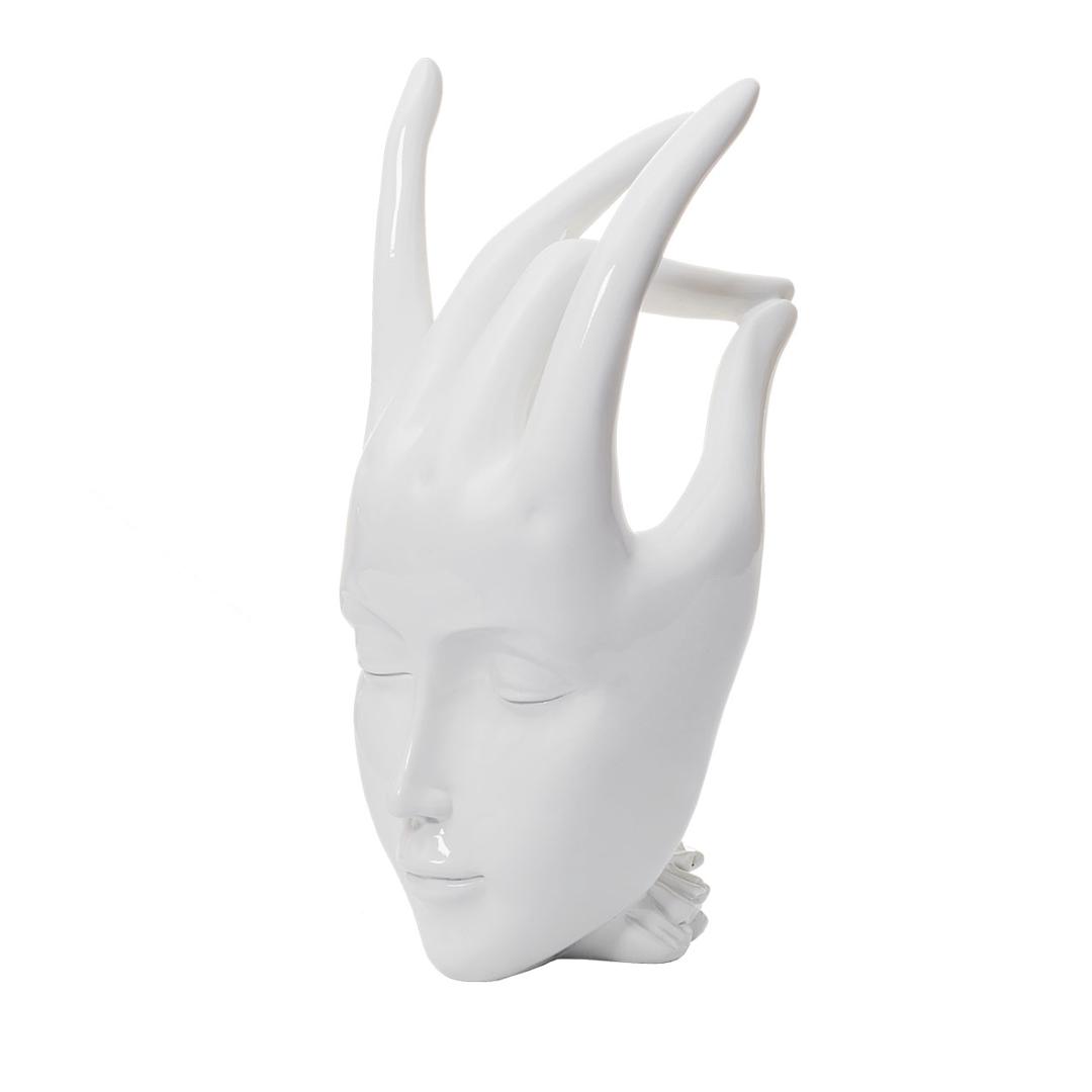 description-full - Абстрактная статуэтка-маска "Мудрость" выполнена в виде изящной женской головки, переходящей в кисть руки, пальцы которой сложены в мудру "шуни". Мудры - это священные жесты, способные привести к различным состояниям сознания; их можно найти в древних традициях всего мира: в индуистской, буддистской, христианской. Шуни-мудра переводится с санскрита как «печать терпения». Соединение большого и среднего пальцев символизирует и стимулирует терпение, понимание и дисциплину. Во время медитации шуни-мудра помогает обрести силу, стойкость и решительность для выполнения своих обязанностей, превращает негативные эмоции в позитивные.