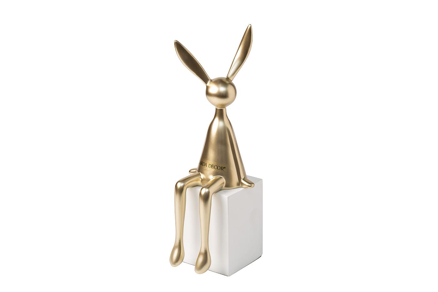 description-full - Абстрактная форма и игра контрастов – статуэтка кролика переосмысляет традиционный декор, превращаясь в арт-объект. Скульптурная статуэтка золотого цвета, расположенная на строгом белом кубе, создает баланс между игривостью и архитектурной четкостью, идеально вписываясь в минимализм, модерн или концептуальный интерьер. Этот объект идеален для обстановок с акцентом на арт-дизайн, добавляя пространству тонкую аллюзию на скульптуры модернизма и эстетические коды галерейного искусства.