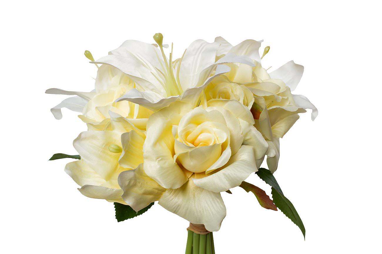 Цветок Garda Decor 9F28017SN-4734 Букет розы-лилии желто-белый 30см (12) арт. 9F28017SN-4734