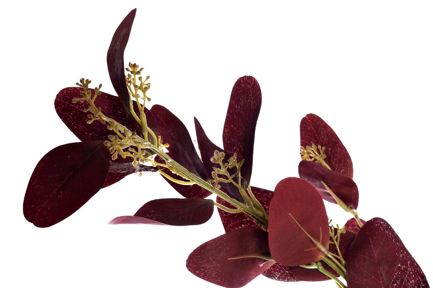 description-full - Изящная и натуралистично выполненная бордовая веточка эвкалипта станет основой или дополнением цветочной композиции для высокой вазы или напольного кашпо. Травы и ветви - модный флористический тренд для создания стильного интерьера, альтернатива традиционным цветам. Красивые композиции из искусственных растений, изготовленных вручную, не требуют особого ухода и будут радовать вас длительное время. Беречь от прямых солнечных лучей, воздействия влаги и огня. Предназначены для использования внутри помещений.